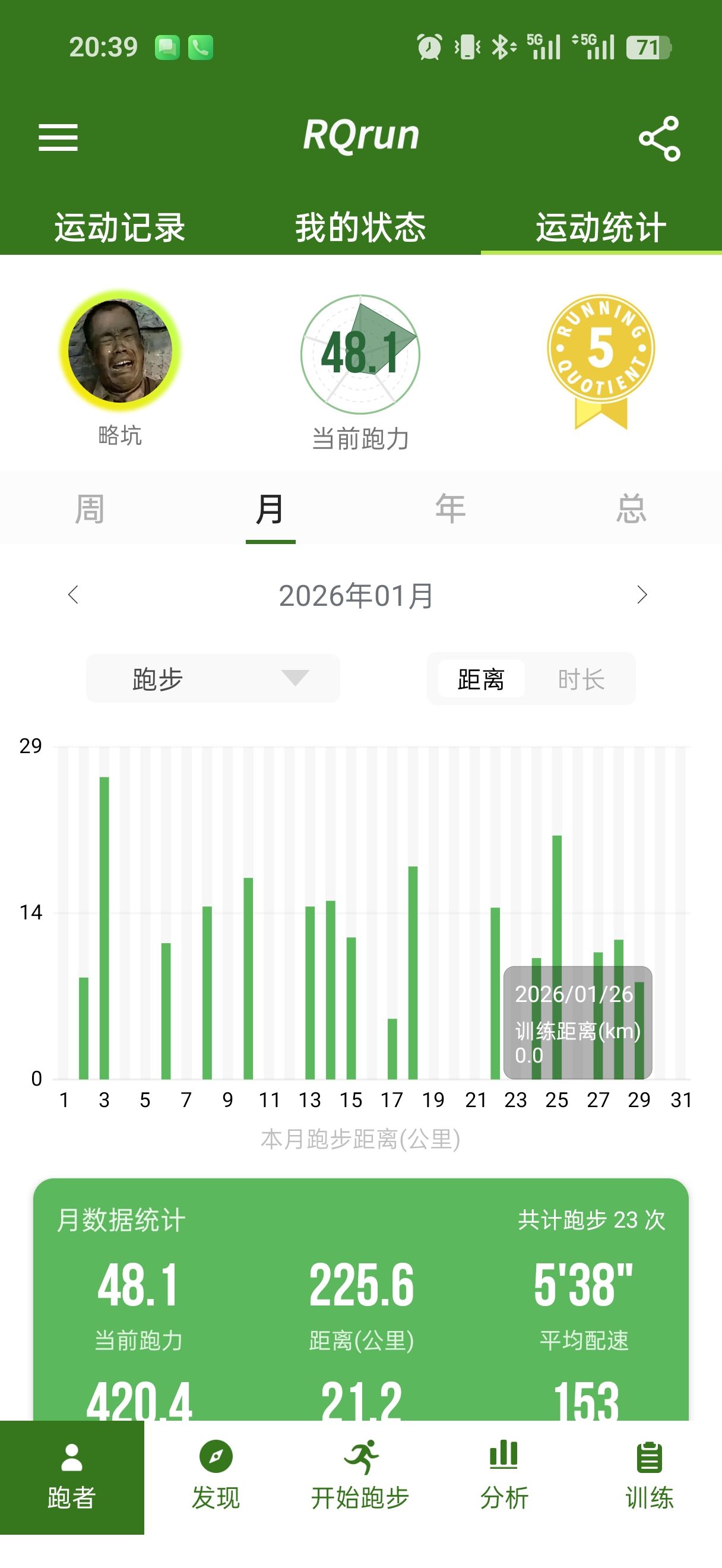 本月第七次跑步,距离上次跑步已超过两周。