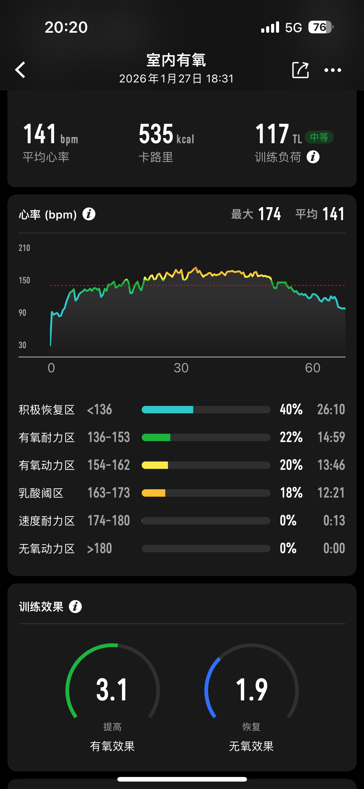 天冷,平均心率157左右,偏高。