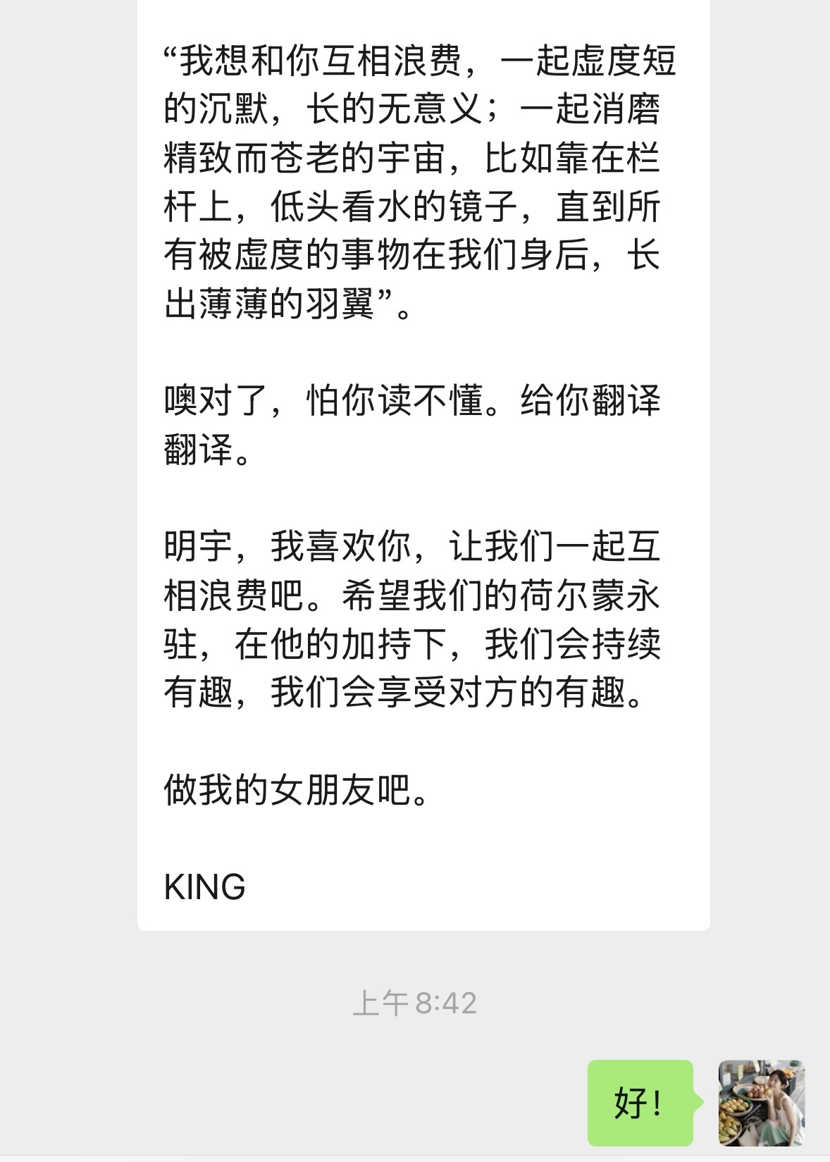 我才发现:没有什么事情能导致感情不好,只有一件,那就是不再相爱或不会爱。只要不是这种情况,甭管分被睡分房睡还是异地,都可以 diy 出甜蜜相爱的方式,这就是灵魂相恋的巨大力量。