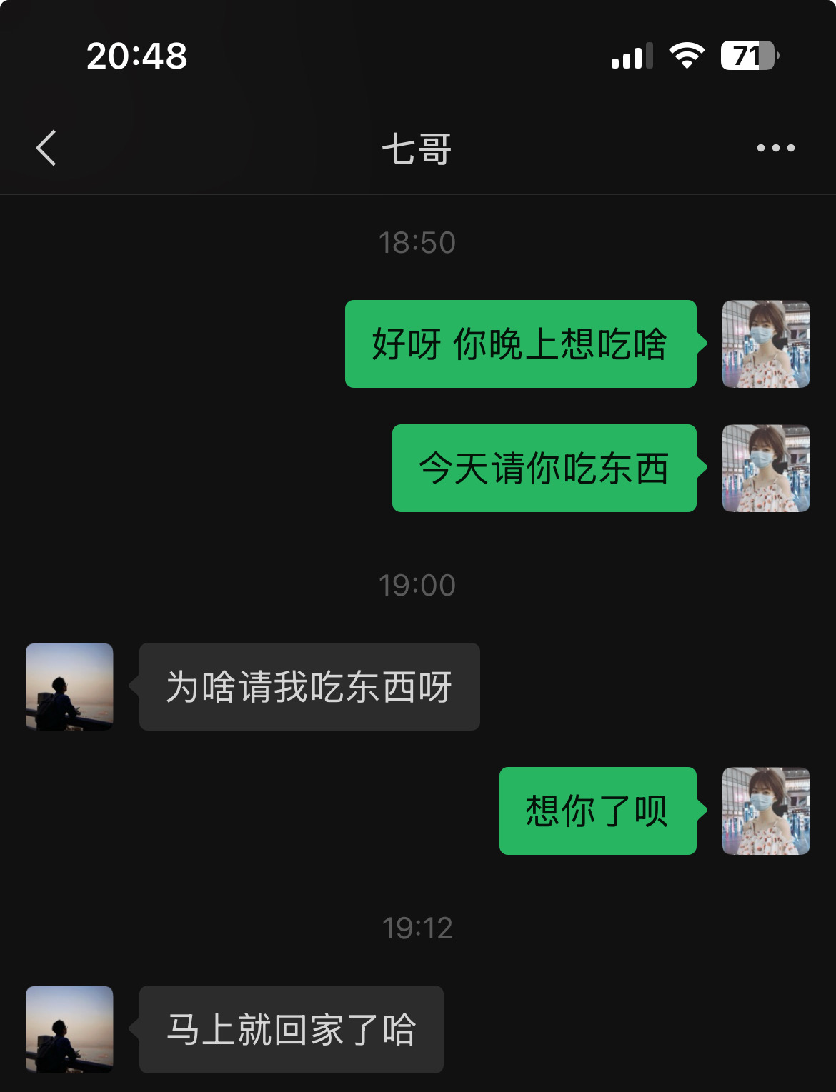 听说我要请他吃饭,连班都不加了,一脚油门就出现在我对面了。