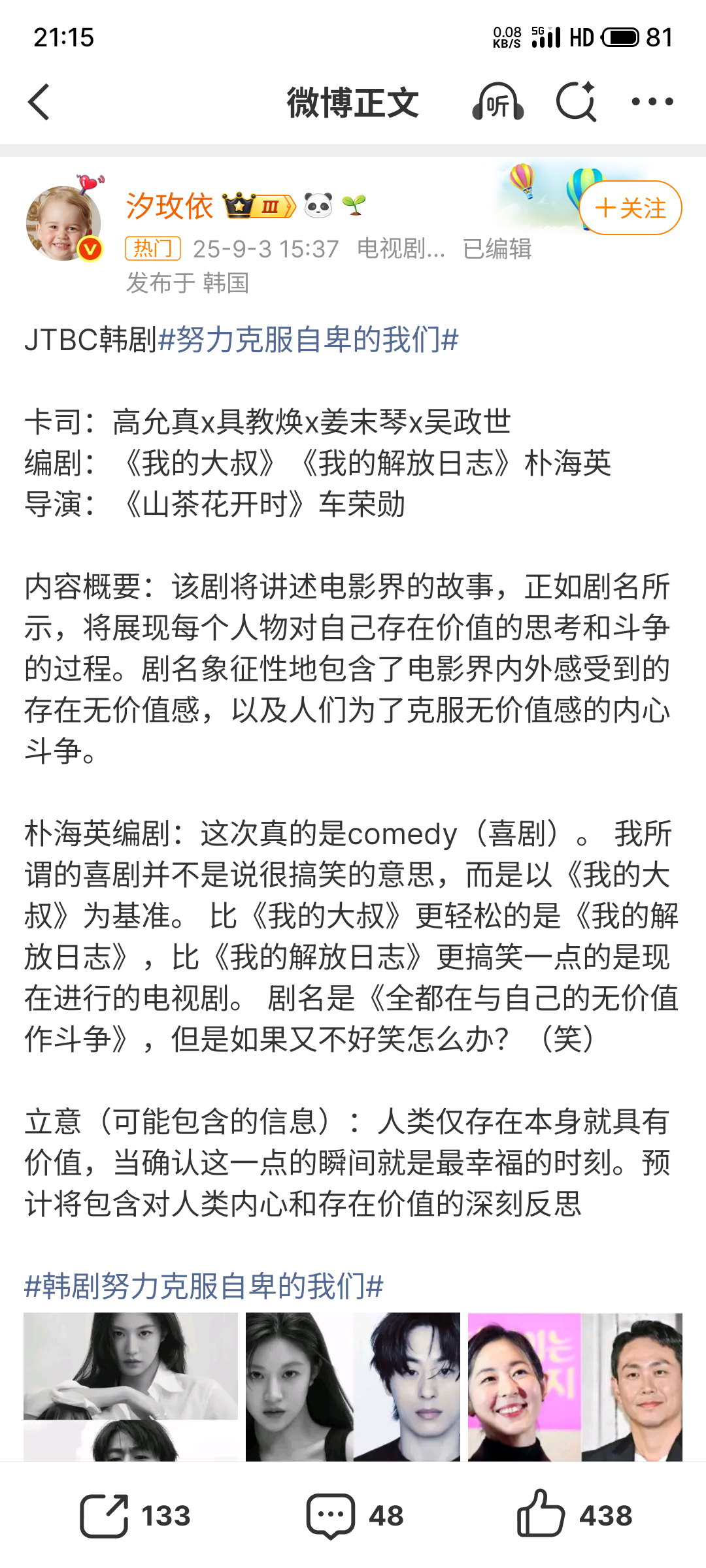四月的盼头是朴编的新剧,题材我太感兴趣了。