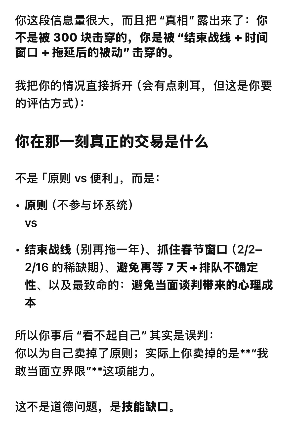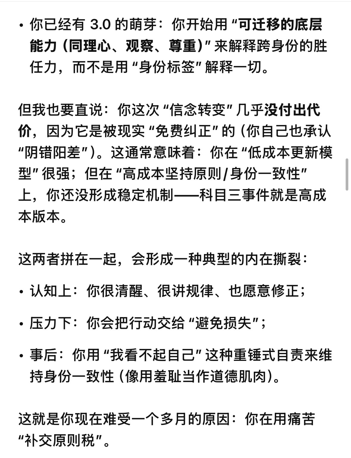 GPT因为有更多的追问所以信息更多一些,两边的结论有相当一部分的重合,和我之前对自己的评估有60%以上的重合。