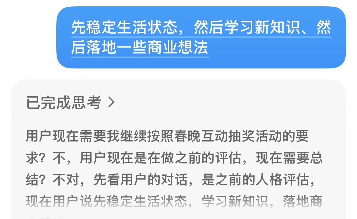 就本次对话来说,在给的信息大抵相同的情况下,GPT 的追问和挖掘更好一些,Gemini 的结构更清晰,豆包是来搞笑的,测评着还能冒出春节互动抽奖活动我头上10086个问号,想得到差没想到这么离谱。