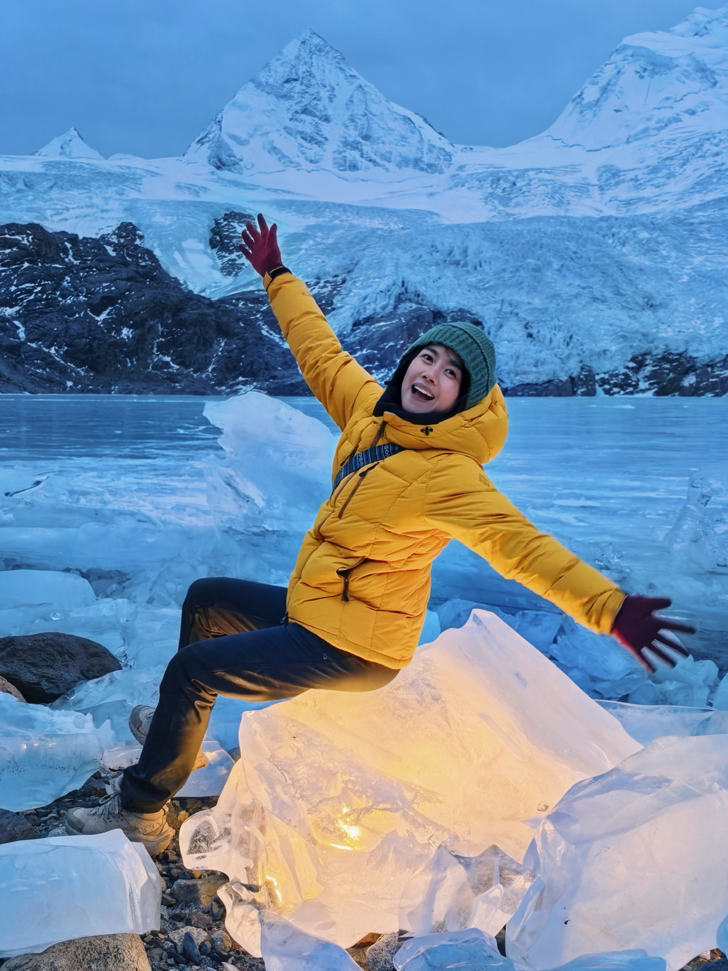 拍照的时候有多出片,听到冰下开裂的轰鸣声逃得就有多快,在众多登山技巧中我最爱屁降