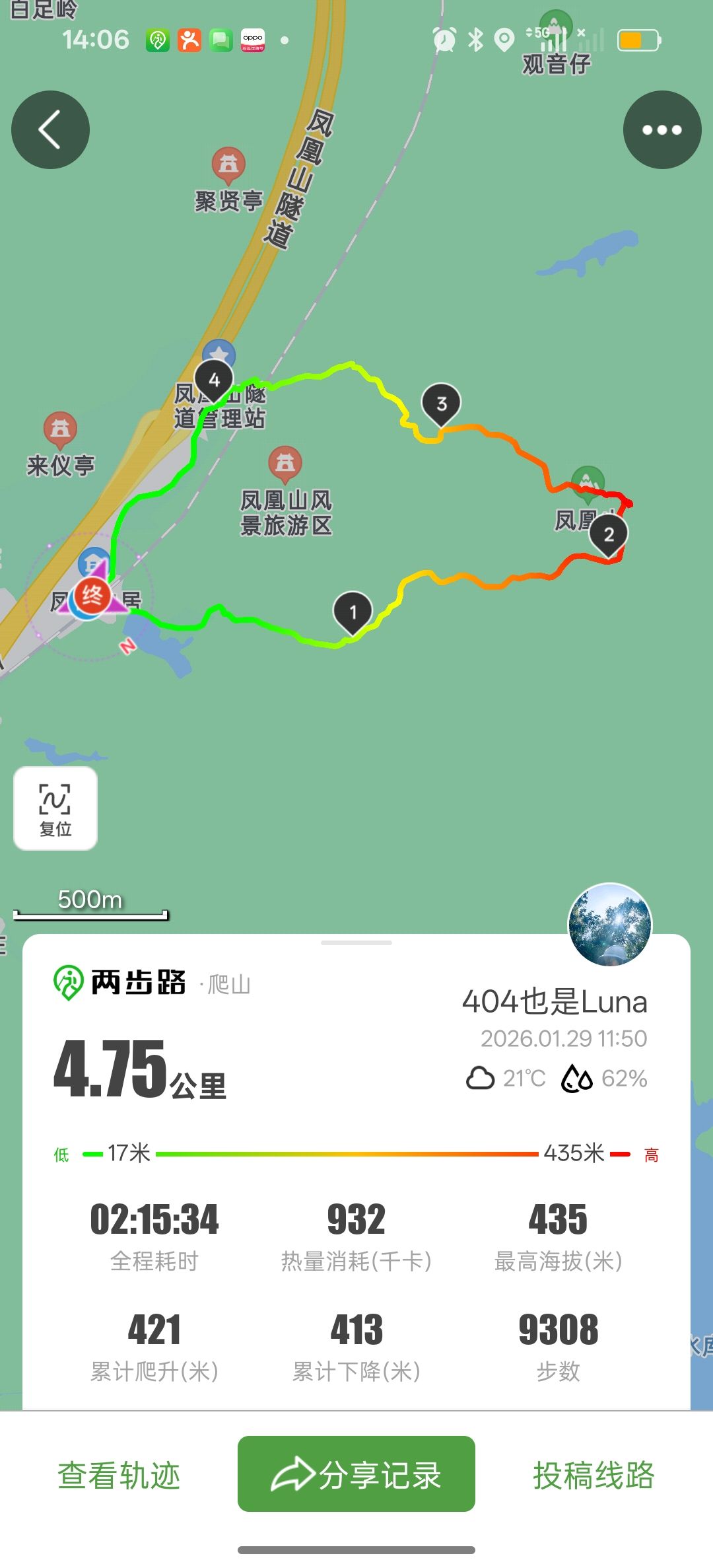 两小时走完的区区不到五公里,不过是前面两公里爬升四百米的绝望坡喊着要回家,后半段绝命一直下坡胫骨前肌酸炸了而已。