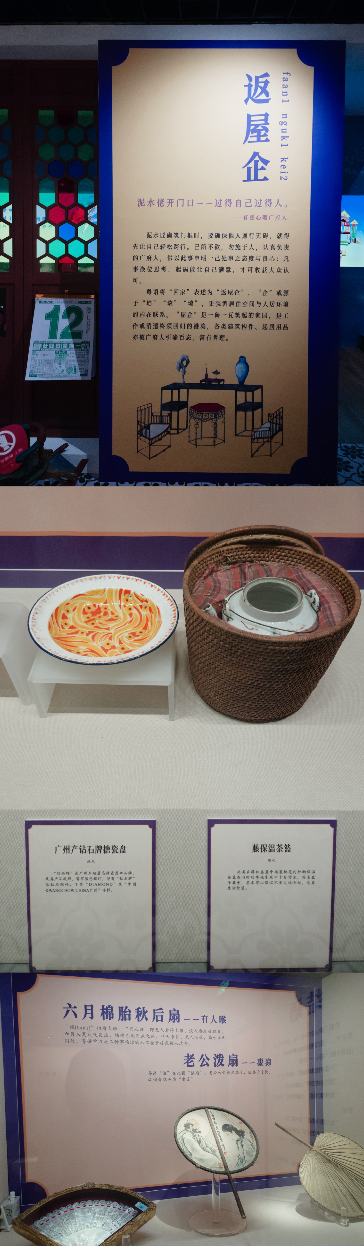镇海楼旁边的展厅在做一个《粤语·粤物》的展览,从“着衫、行街、食饭、睇戏、返屋企”五个角度结合文物介绍粤语俗语~