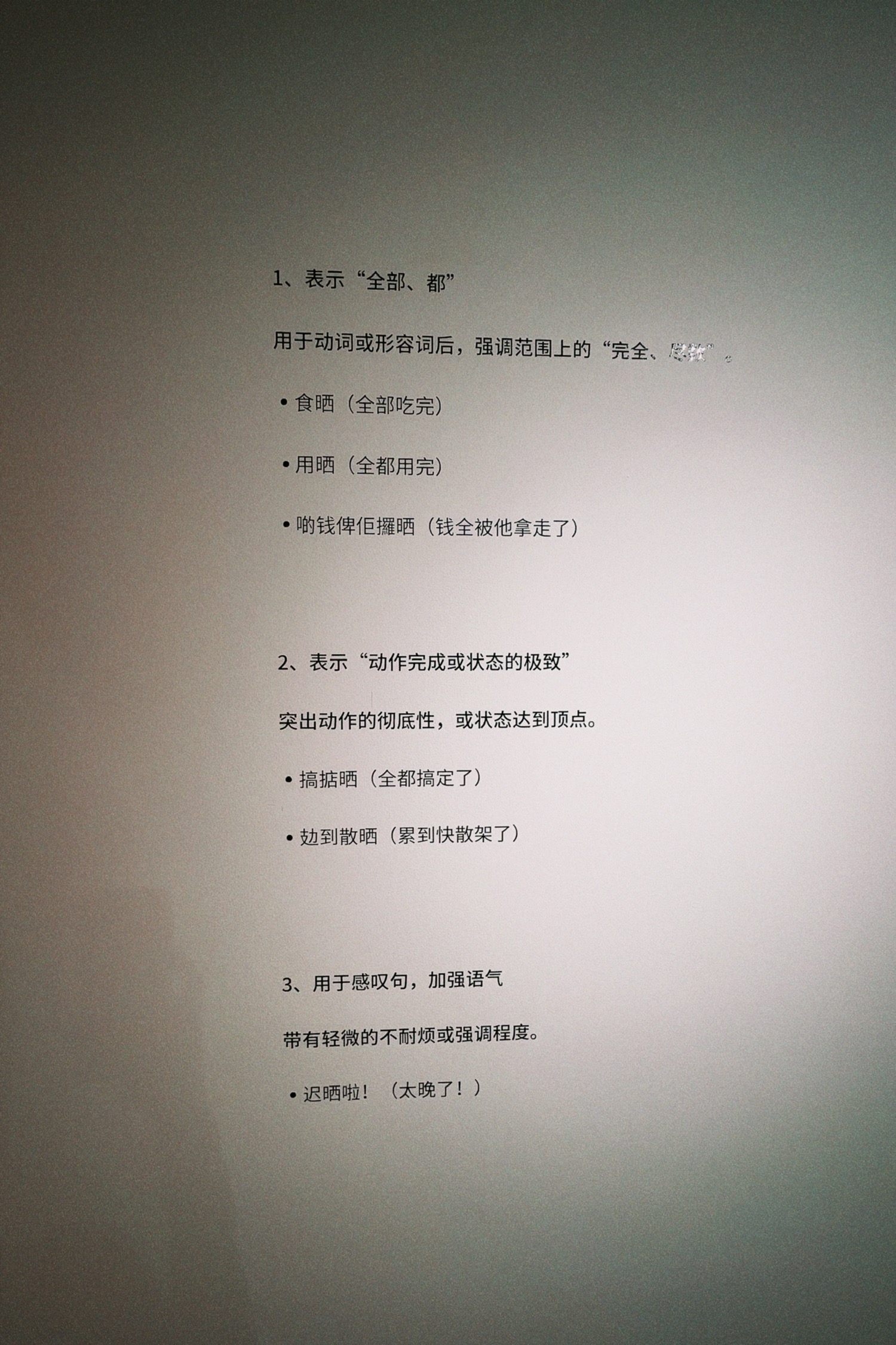 晒是动词、也是程度副词、也是感叹词