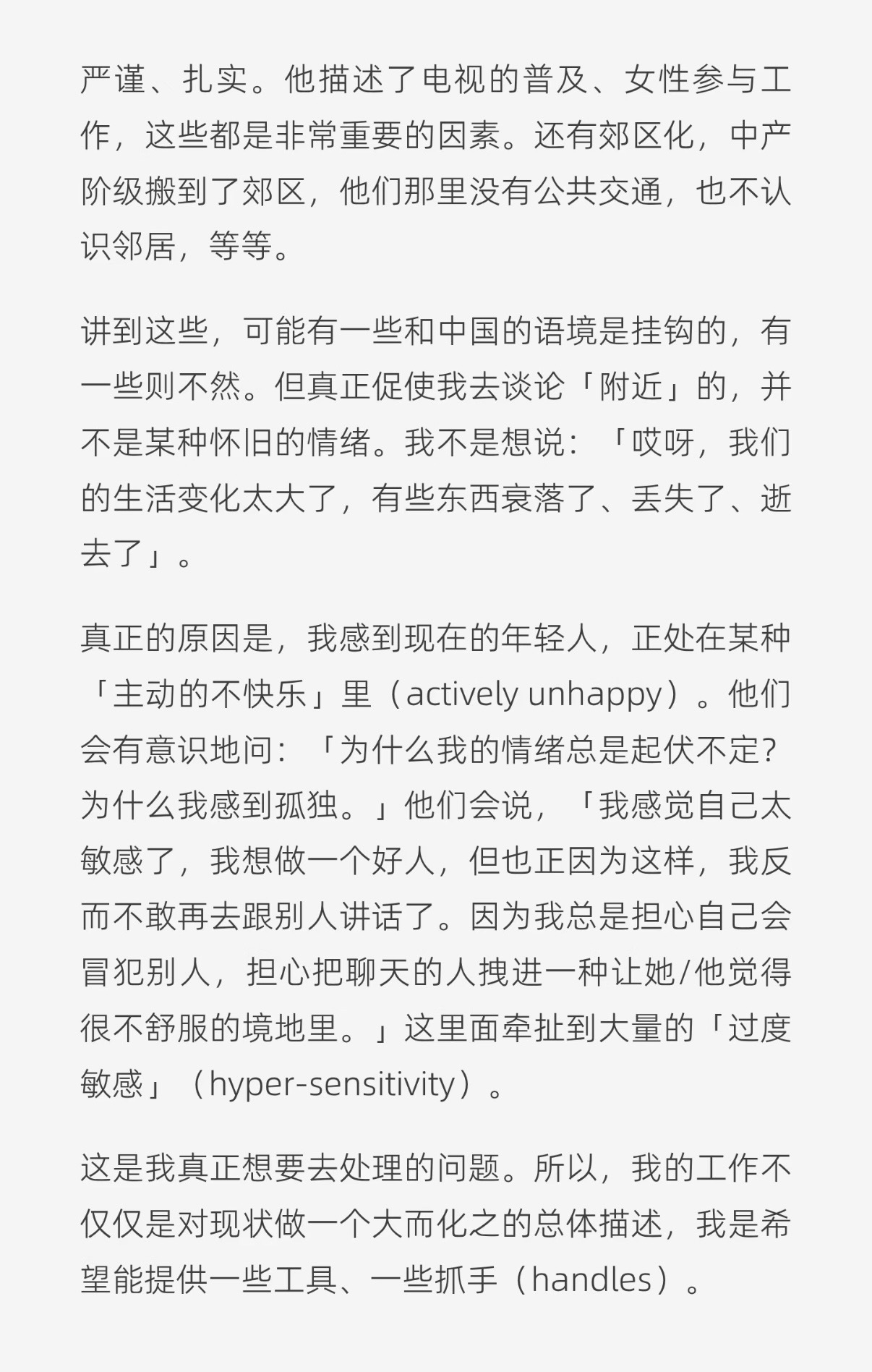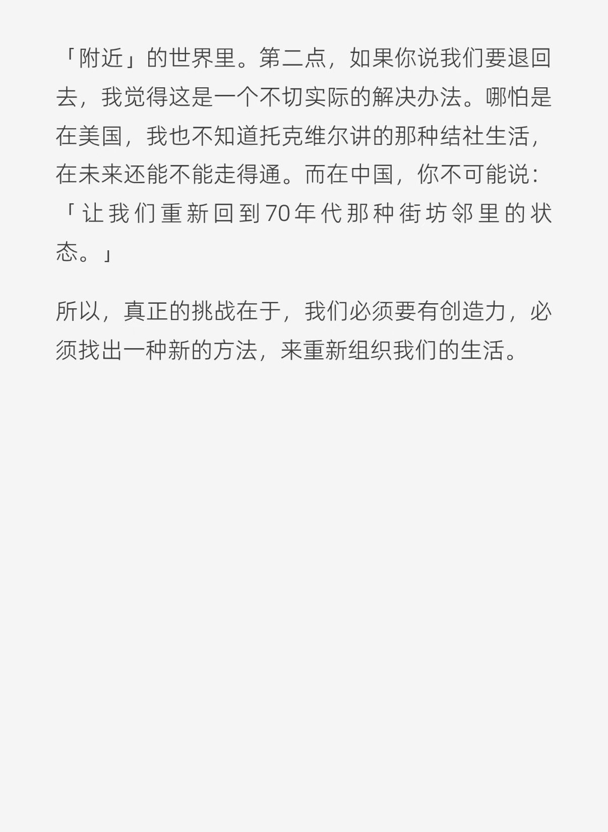 归根结底,所有这些眼耳鼻舌身对外部世界的视觉、听觉、嗅觉、味觉和触觉最终还是要回到自身,经历最后一道手续:剔除了所有肮脏烦乱的坏的观感,只留下那些美好的观感。做个聪明人,严格把关,严格筛选,非美勿视,非美勿听,非美勿言,非美勿动,安能不时时处处感到生之欢欣?