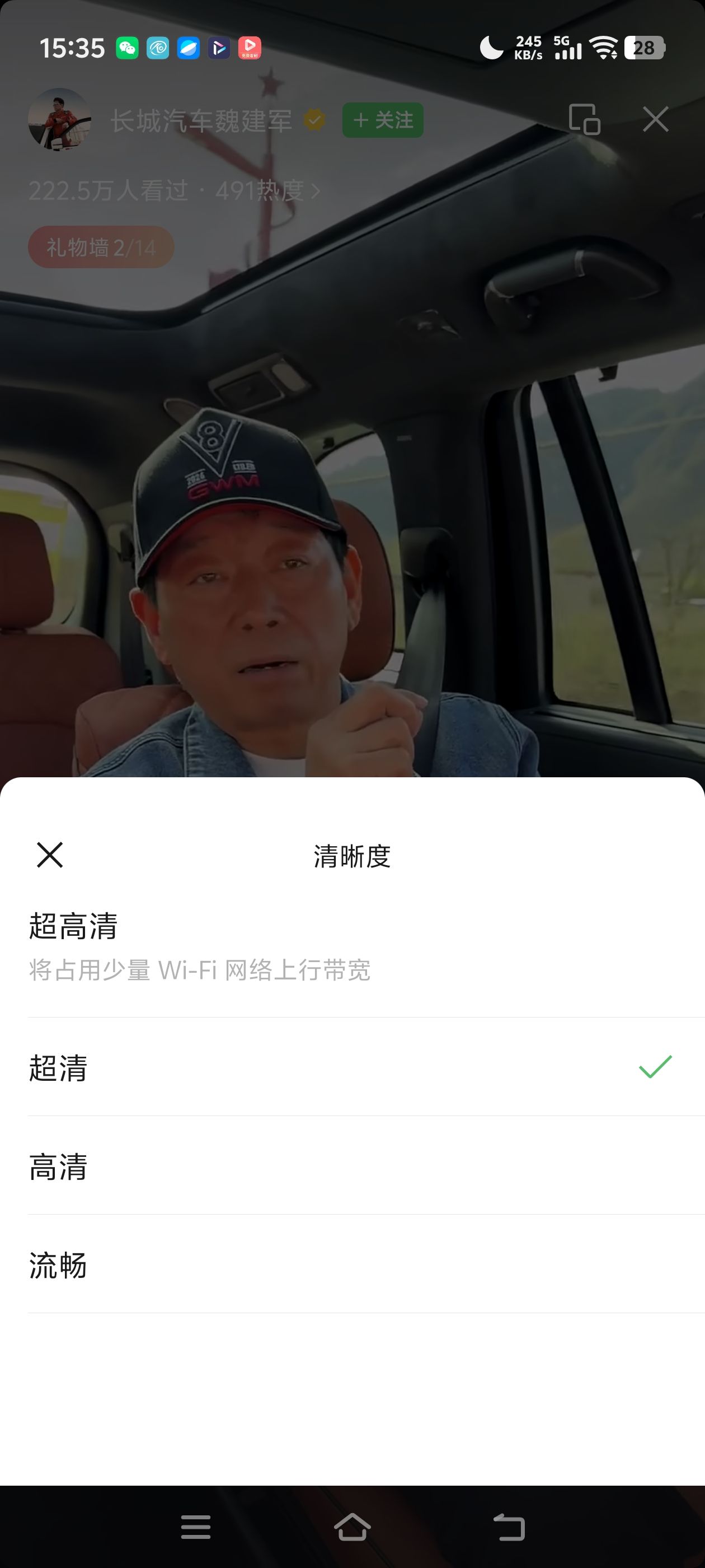 视频号直播间新增超高清画质