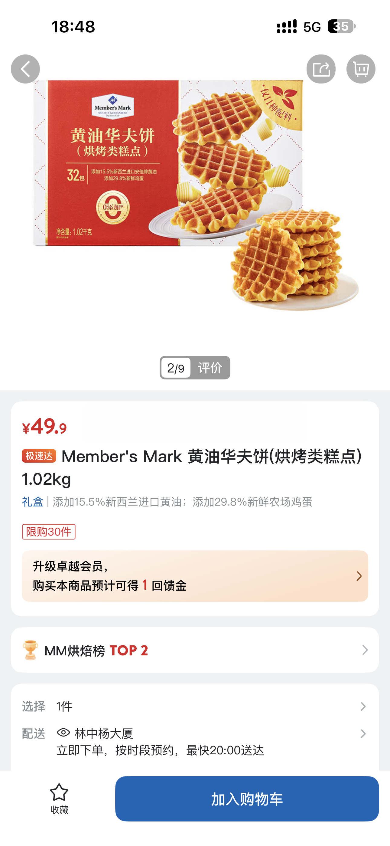 2、1.02kg Member's Mark 黄油华夫饼(烘烤类糕点)