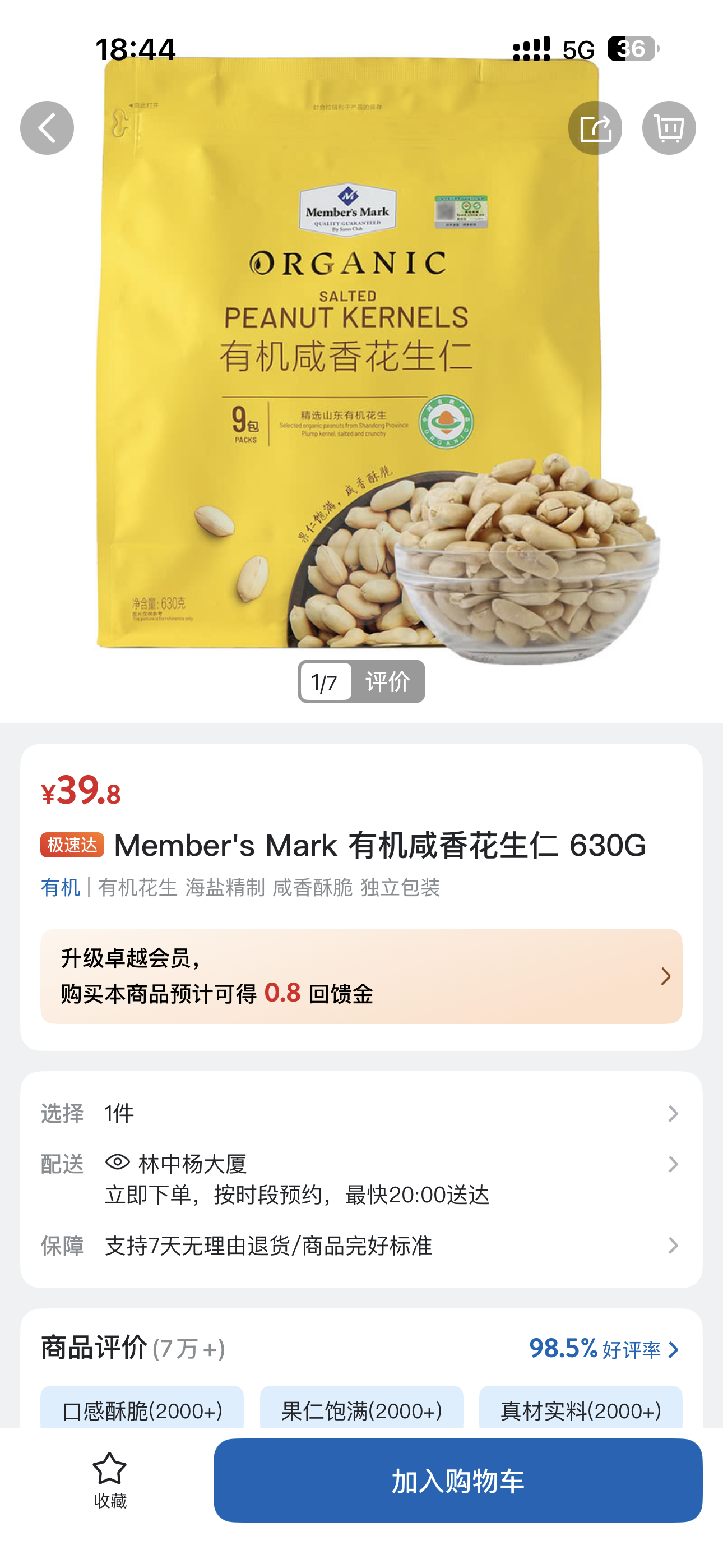 8、Member's Mark 有机咸香花生仁 630G