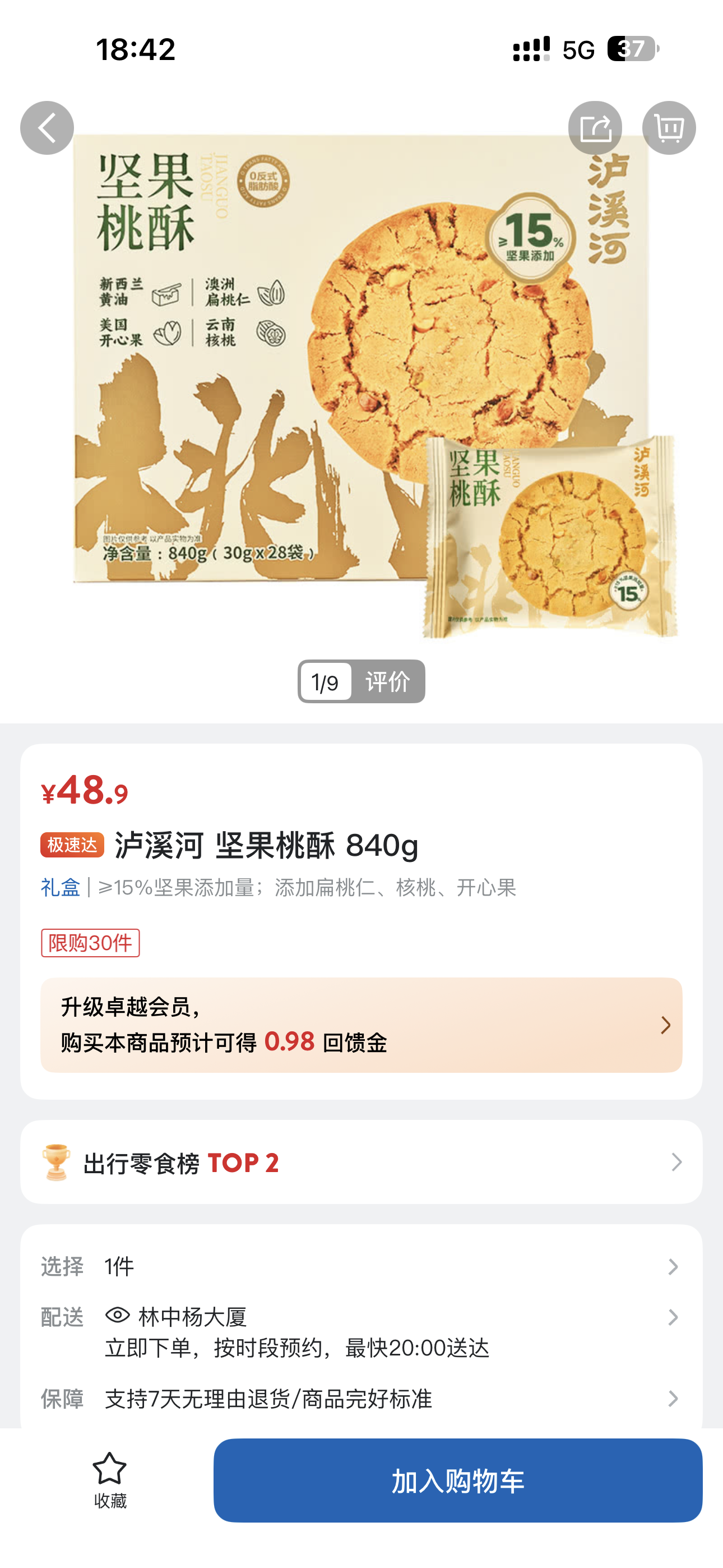 10、泸溪河 坚果桃酥 840g