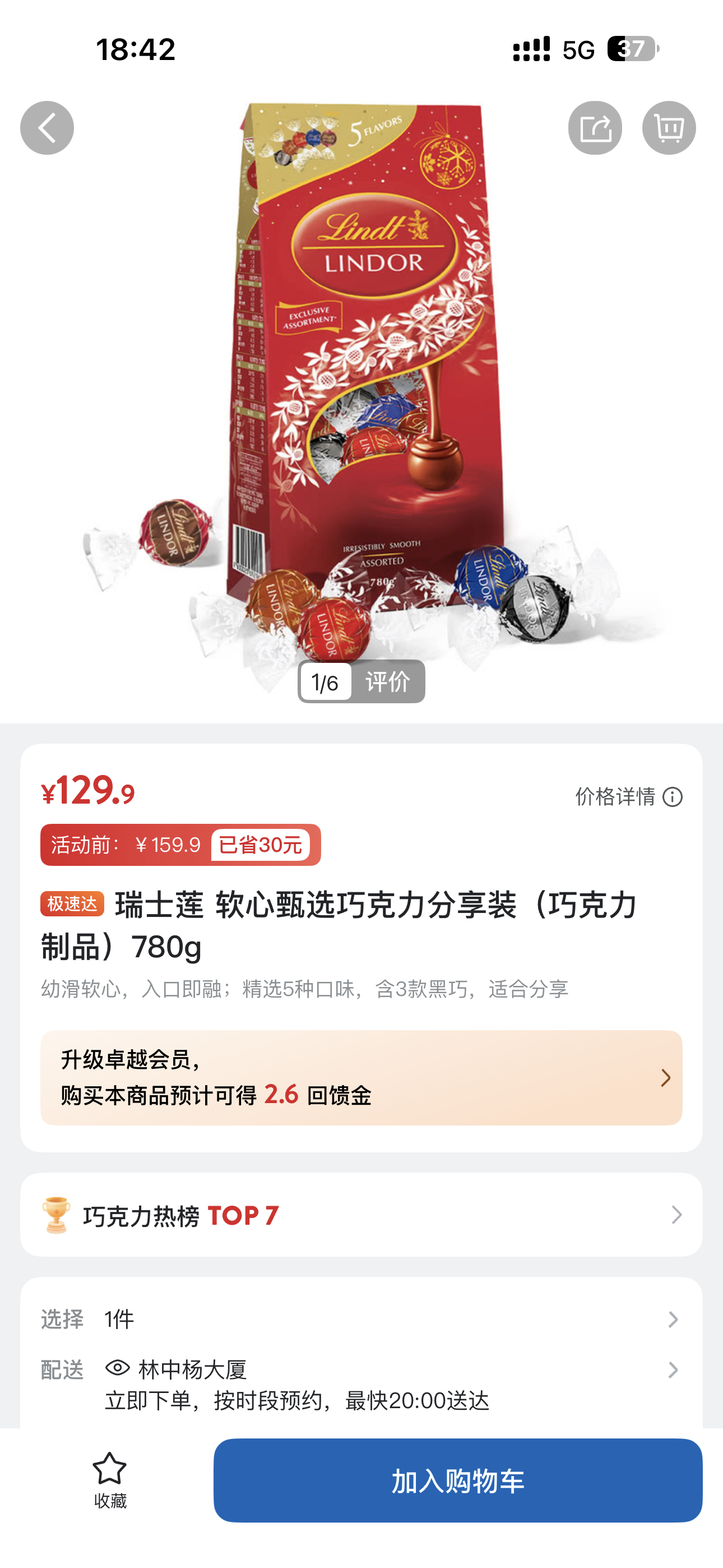 9、瑞士莲 软心甄选巧克力分享装(巧克力
