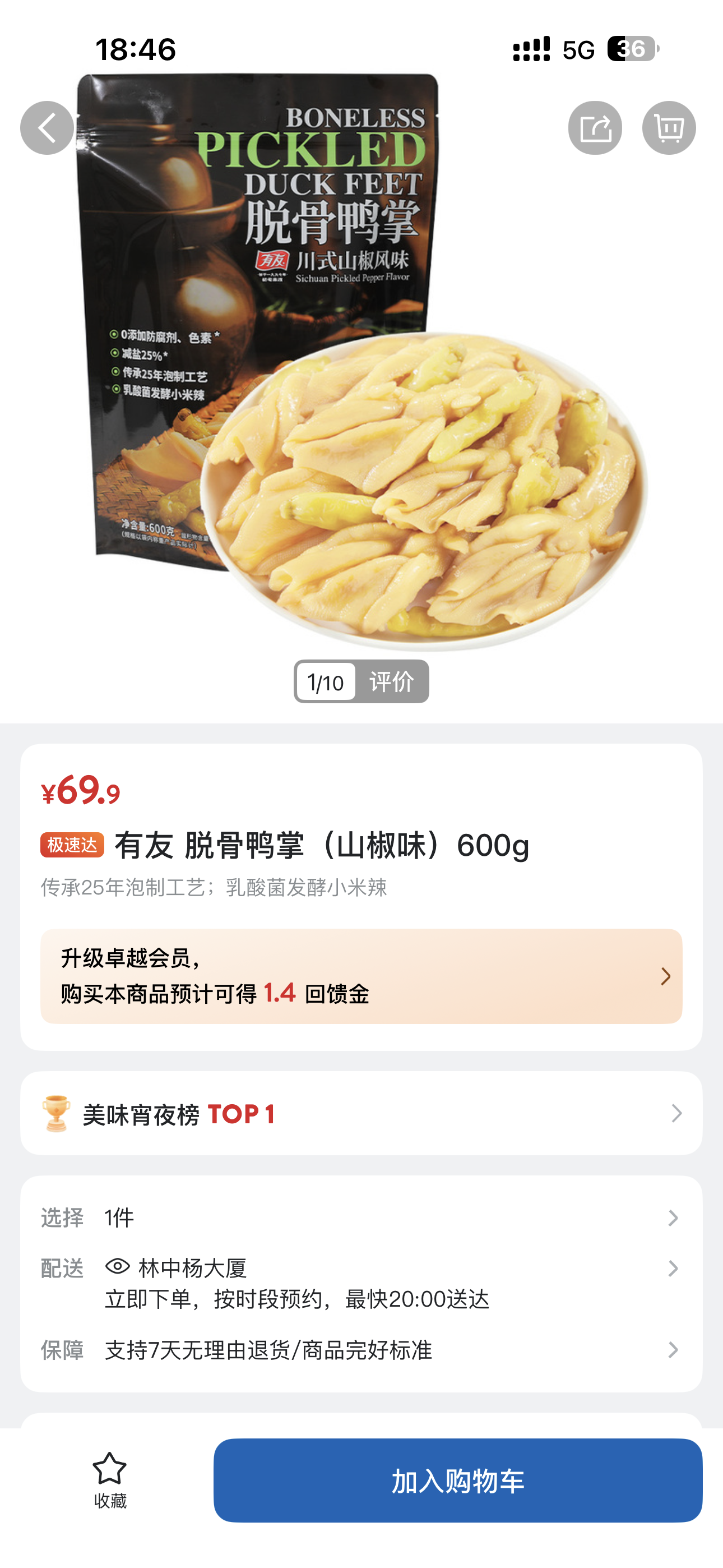 5、有友 脱骨鸭掌(山椒味)600g