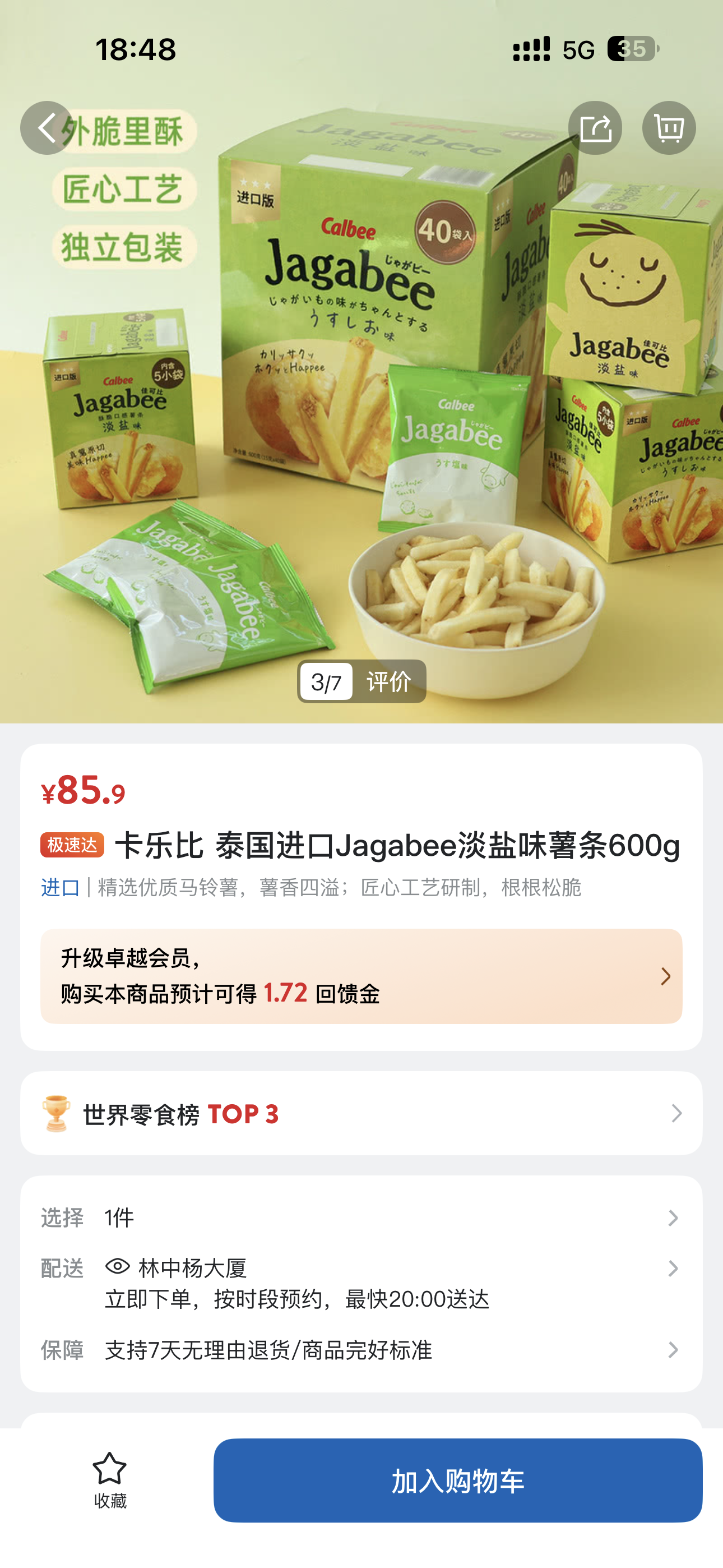 1、卡乐比 泰国进口Jagabee淡盐味薯条600g