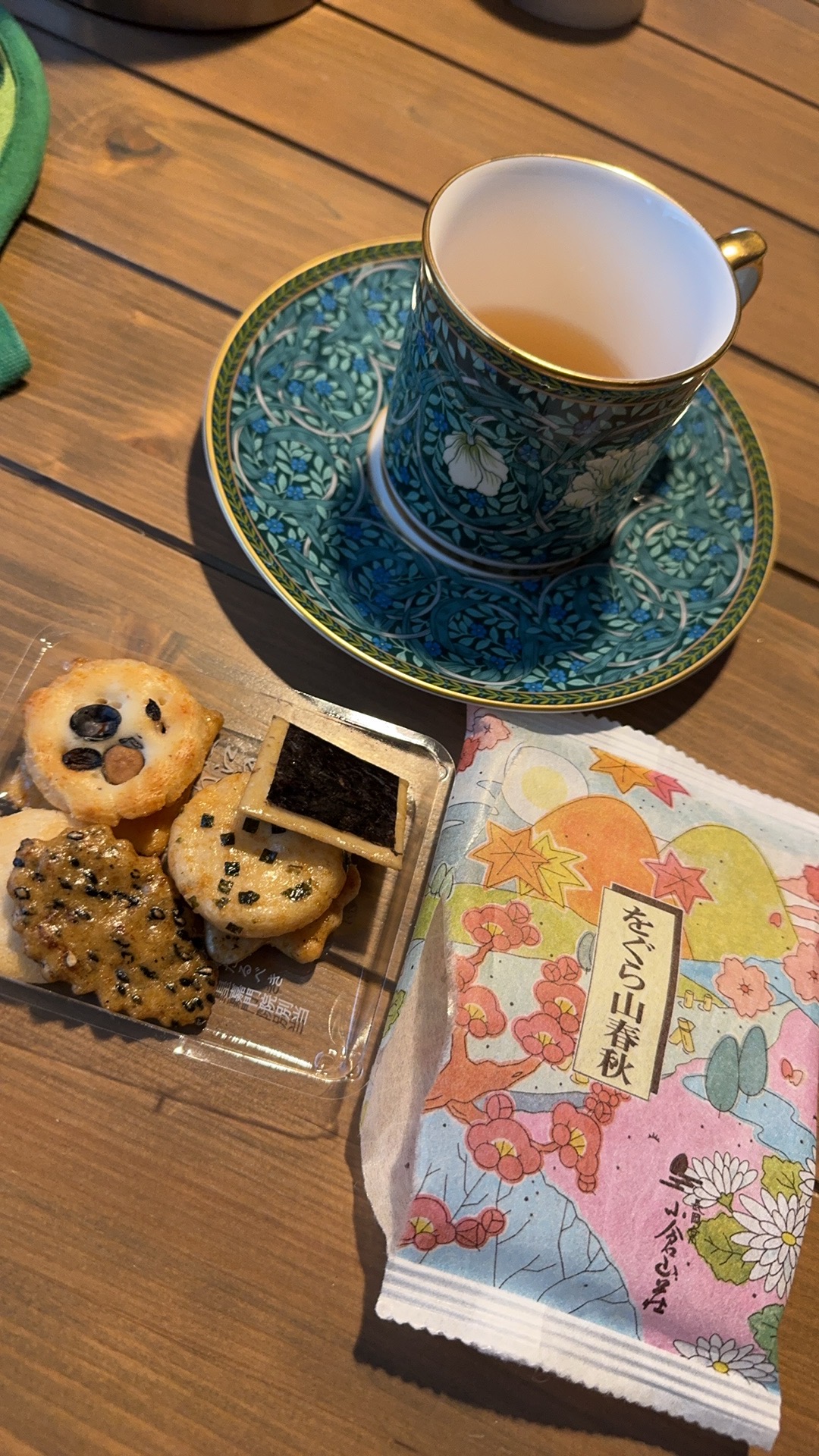 回到家用喜欢的杯子喝茶吃仙贝