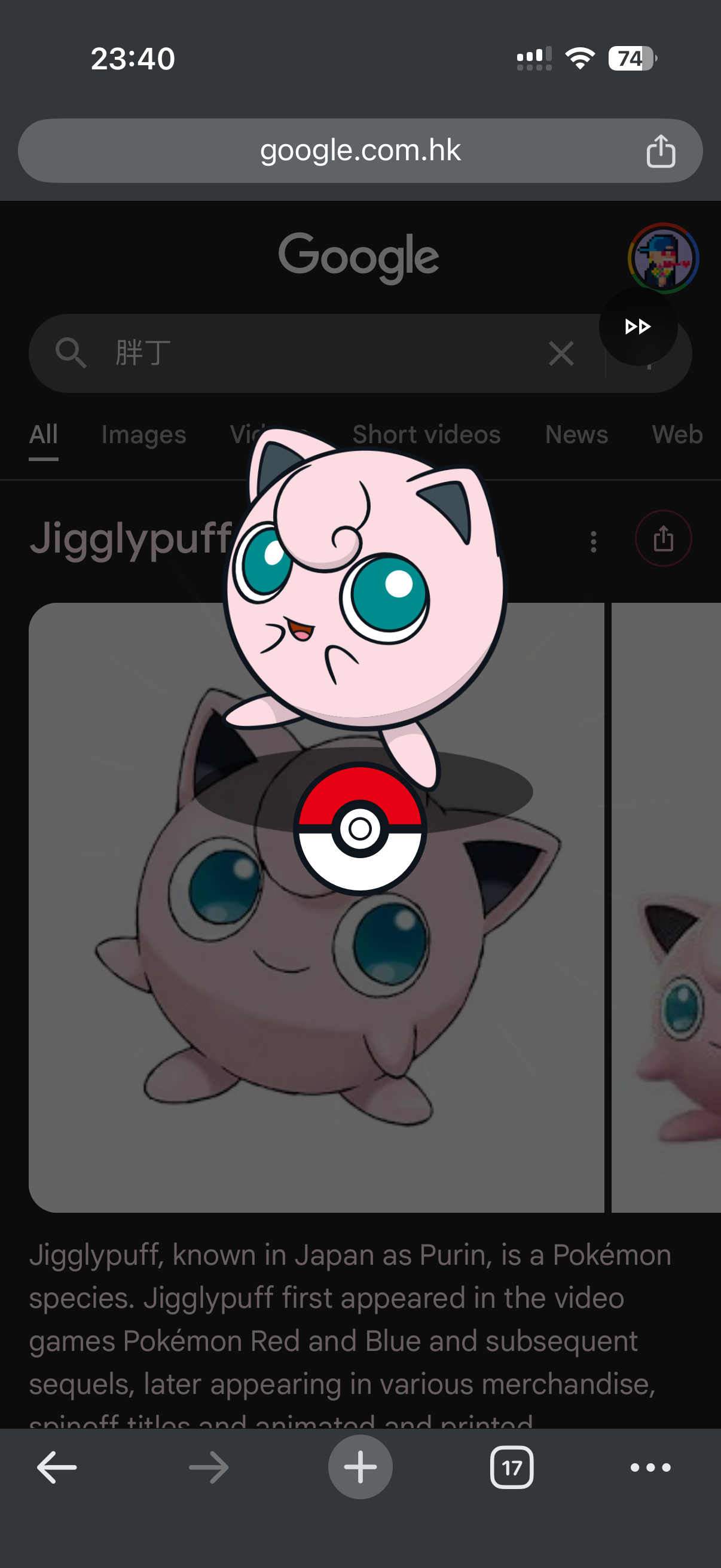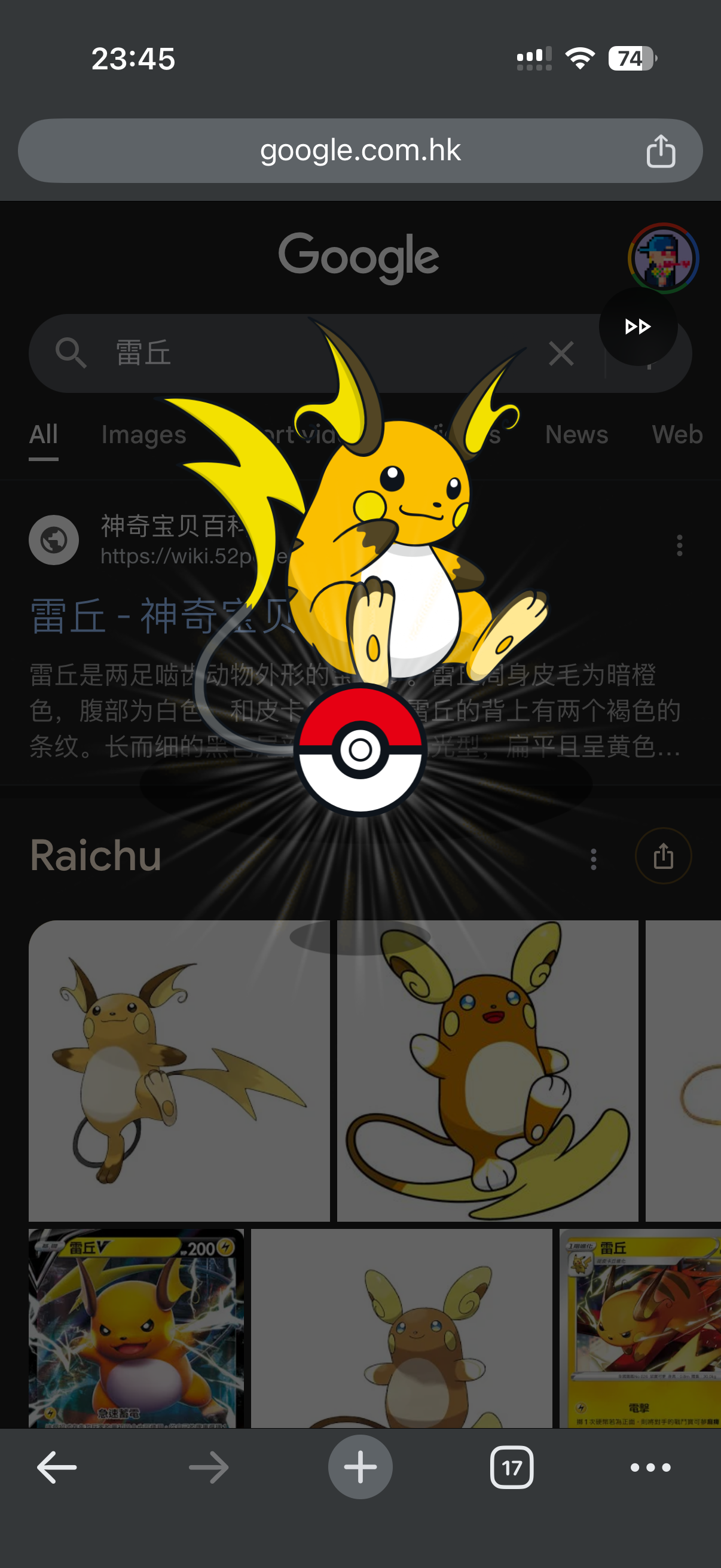 以防你不知道,在手机端用谷歌搜初代 1 5 1 宝可梦的名字(不限语种),会出现捕捉的动画彩蛋和任务系统。