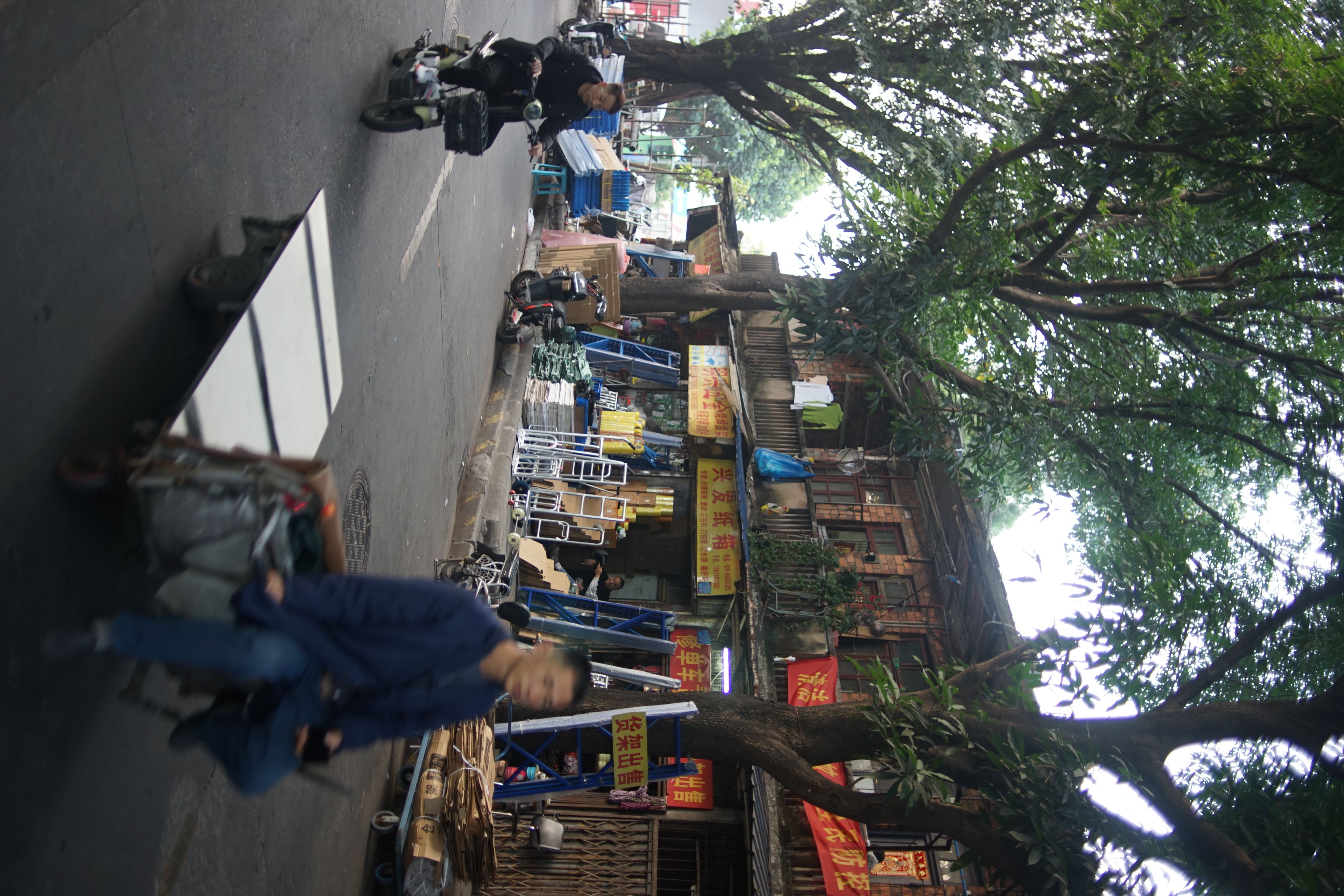 周末下午三元里附近,车流人流拥挤过生活。