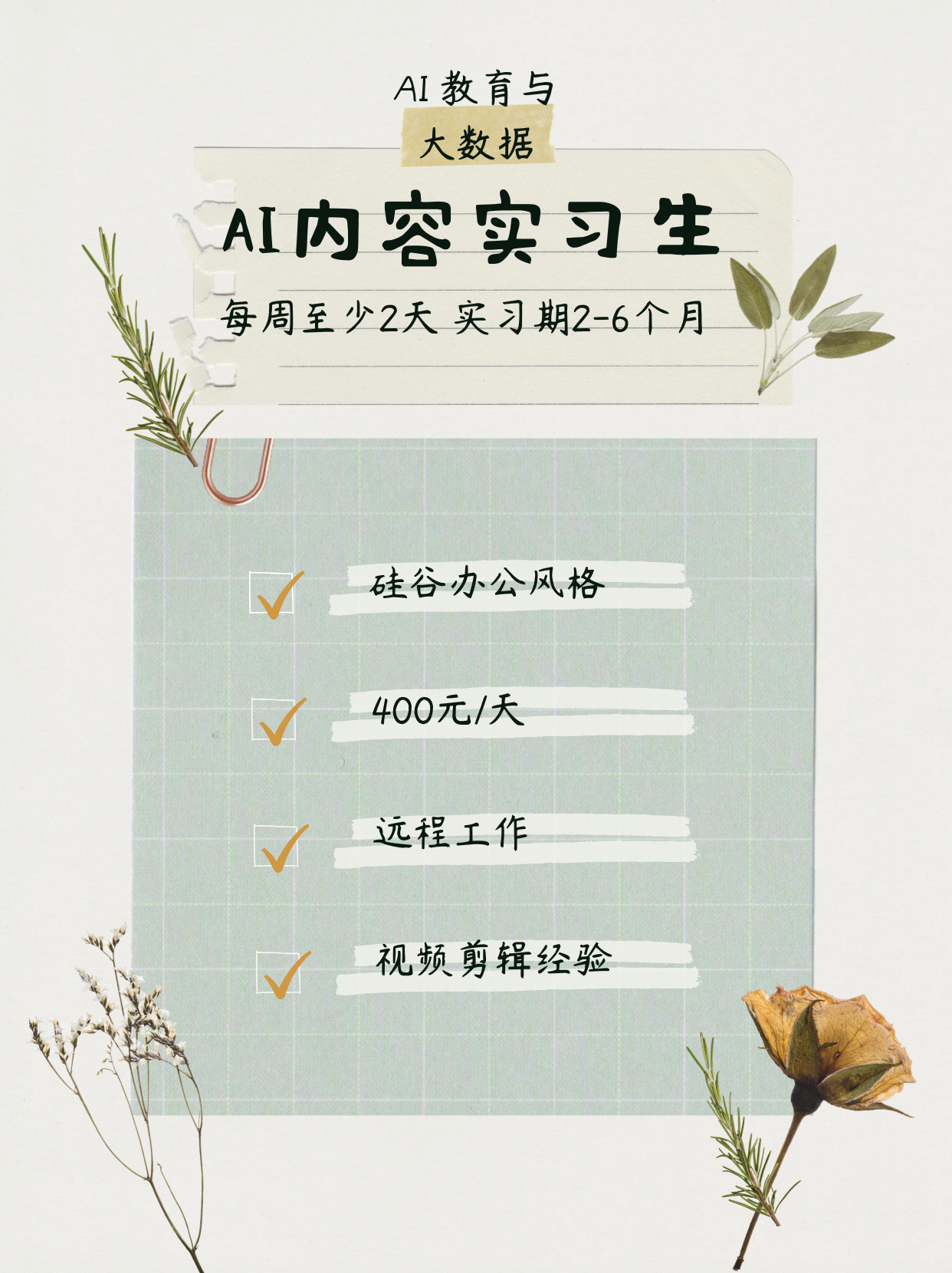 【每周至少实习两天】