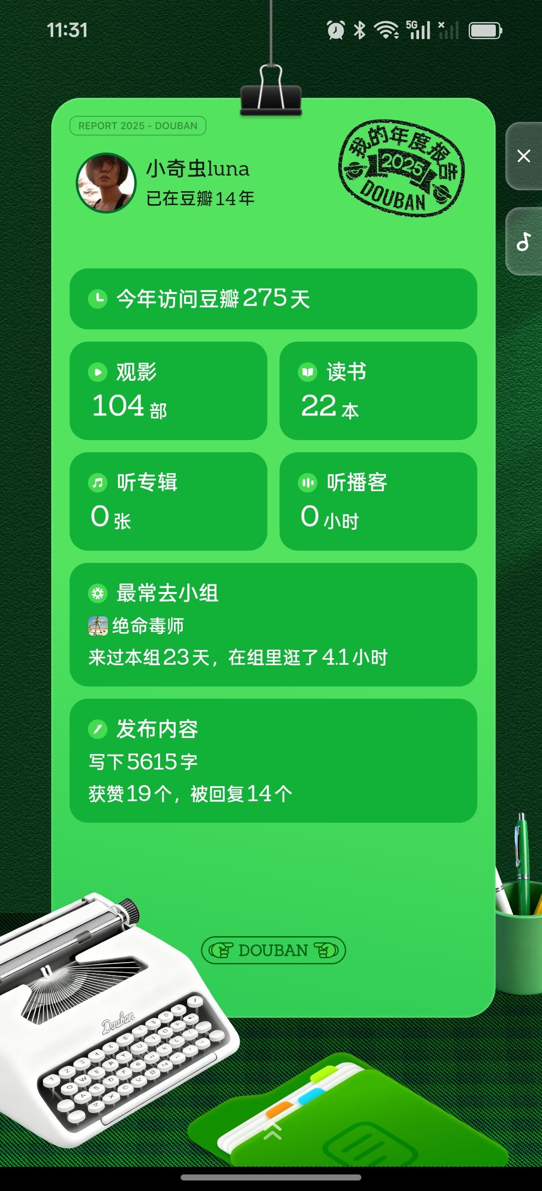 这么多年终总结里,打开画面审美最有品味的,还是豆瓣,其次是小宇宙。