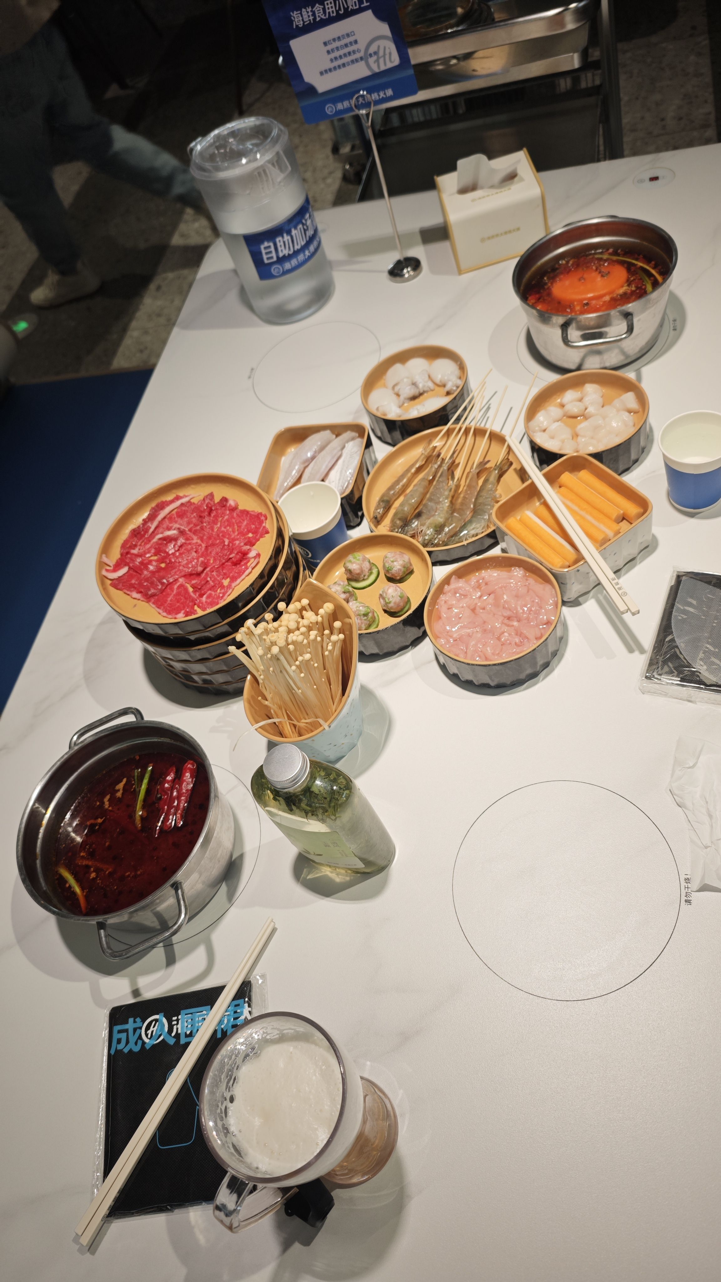 海底捞自助好吃,就是贵➕排队,俩人吃了 370,不过下次控制在 200 出头应该可以,第一次吃很容易拿多,吃点主食的话更能控制预算(记笔记)。