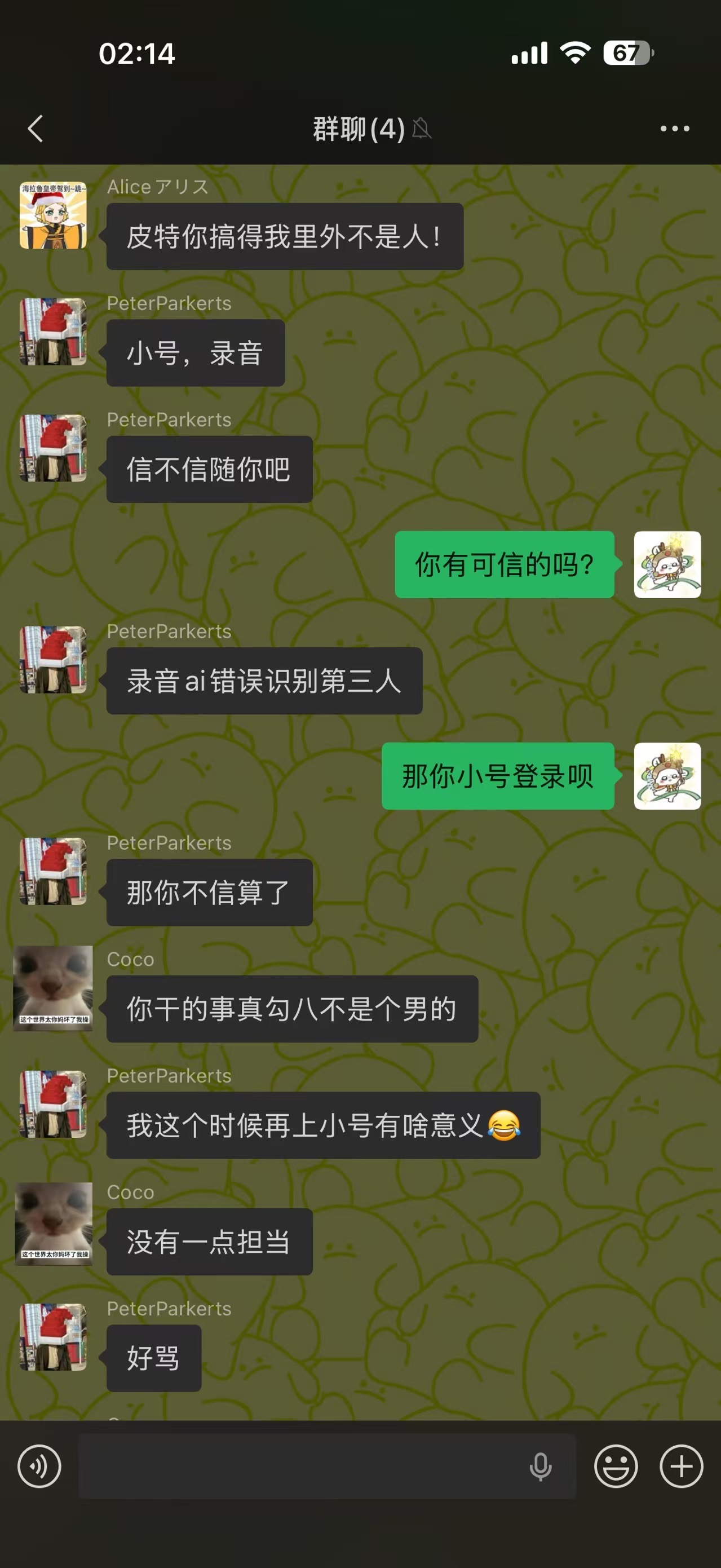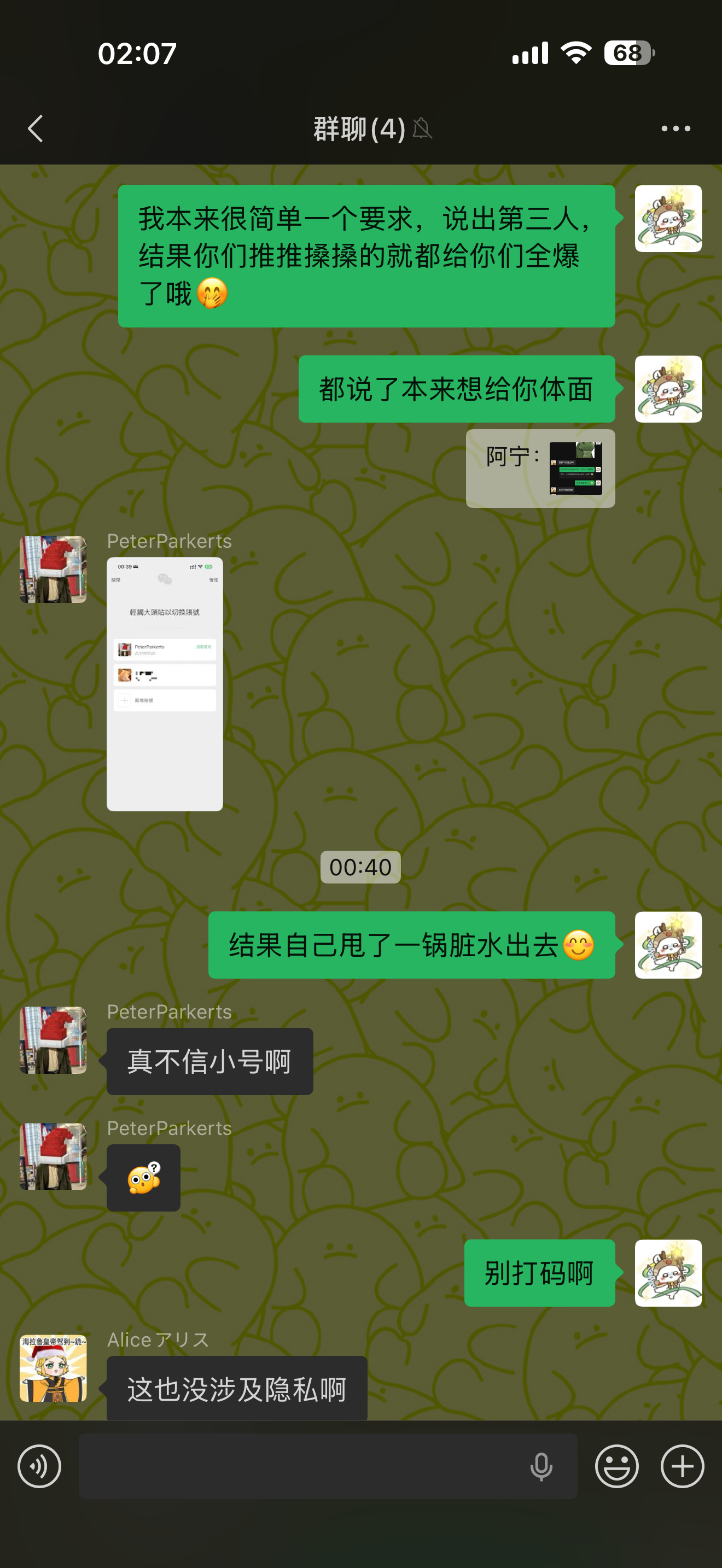 真是惨,背刺3.0咯🤭俩背刺的互相背刺,一个背后爆自己人瓜一个跟自己人对口供录音,真的太适配了🤭主动拉群对线都给自己爆没了,好好笑🤭背刺者恒背刺,大家认认脸,反正感觉他们也不在乎了