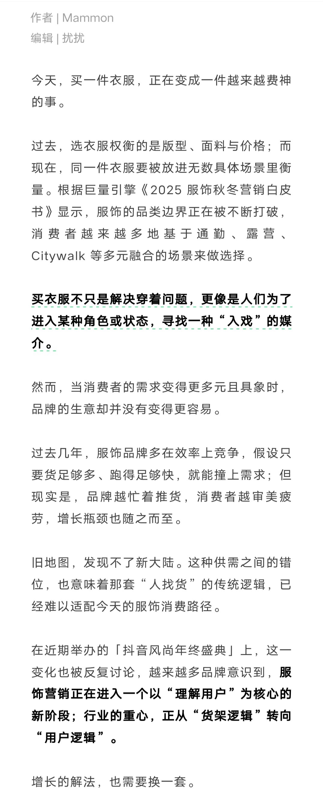 服饰营销正在进入一个以“理解用户”为核心的新阶段;行业的重心,正从“货架逻辑”转向“用户逻辑”。增长的解法,也需要换一套。