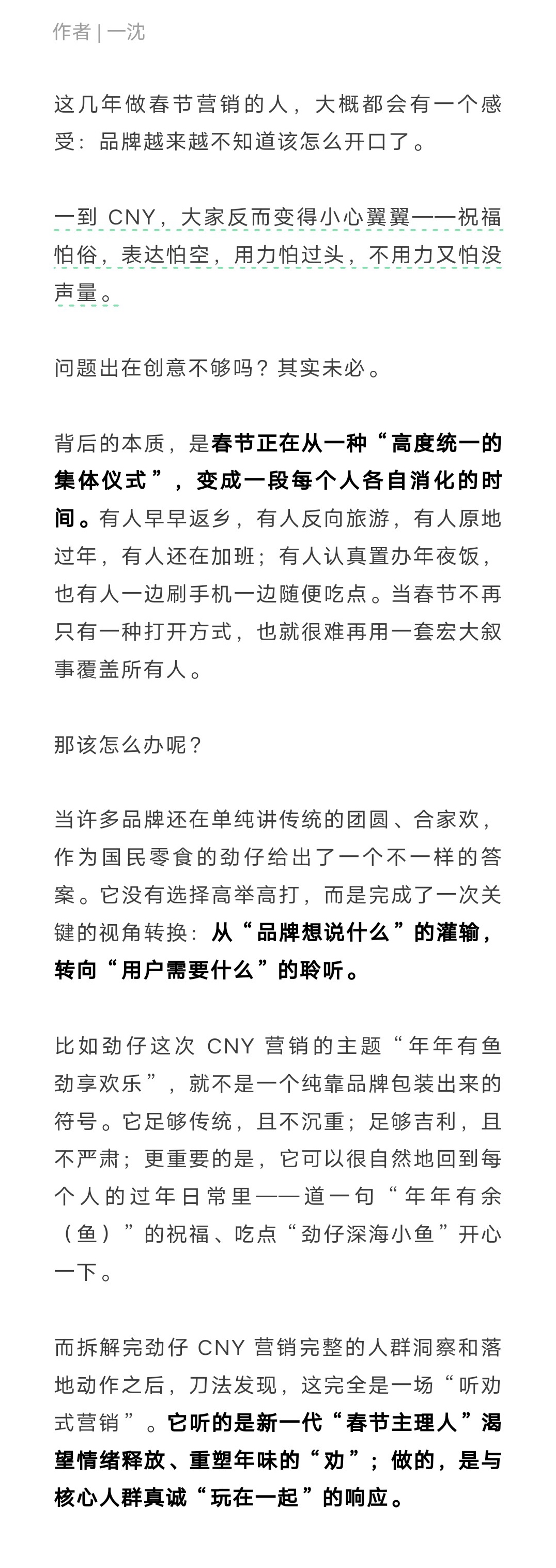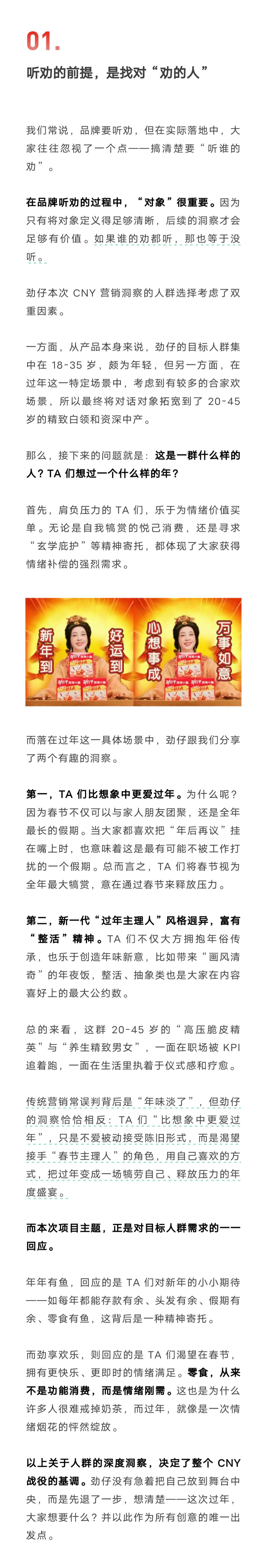 春节正在从一种“高度统一的集体仪式”,变成一段每个人各自消化的时间,这对品牌营销来说意味着什么呢?我们来看看劲仔是怎么做的。