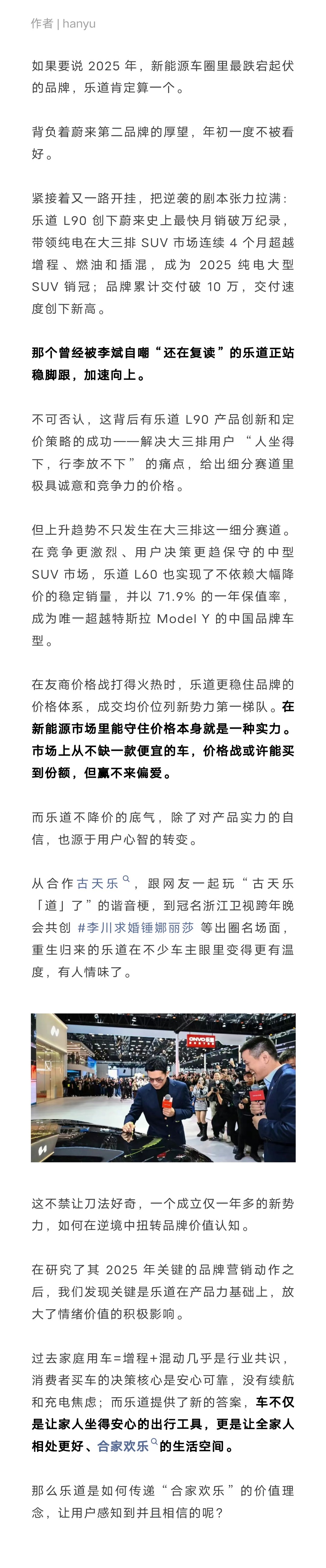 作为蔚来嫡长子的乐道,在2025年走出了一条从低谷到销冠的逆袭曲线,而情绪是它的杀手锏。当车企营销进入“攻心”时代,乐道到底做对了什么?