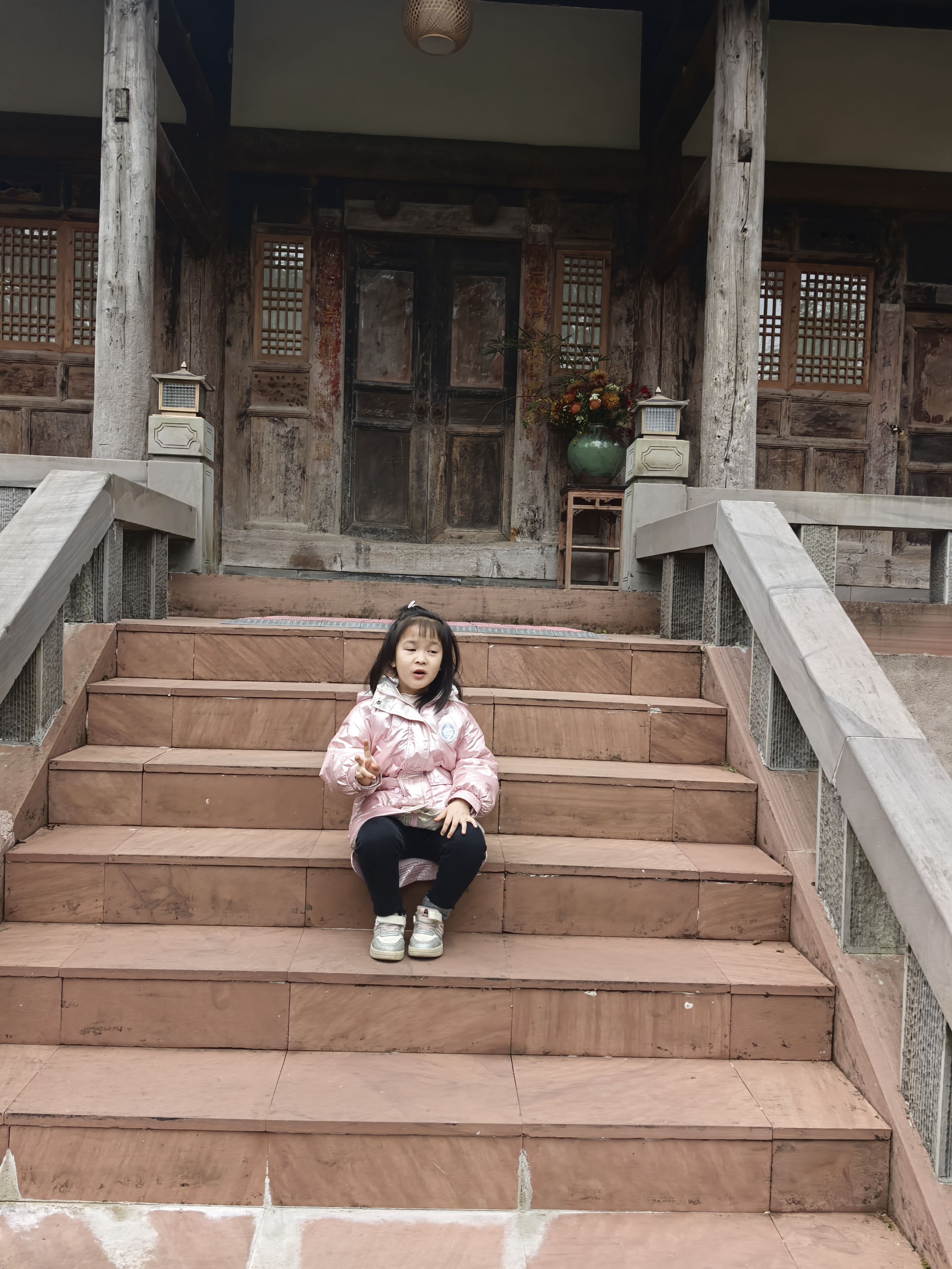 在二楼喊妈妈。