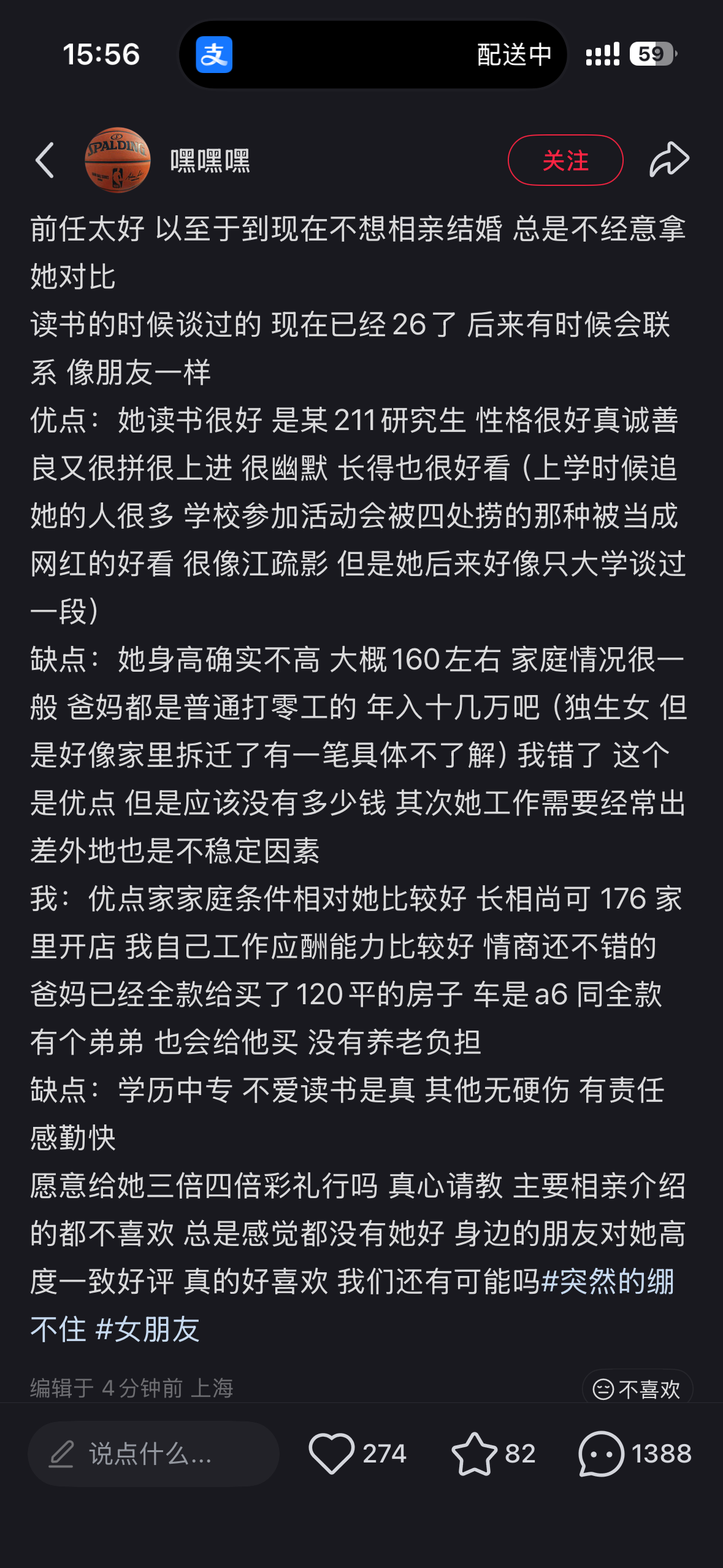 觉得女生很可爱。而后突然联想到了自己的发量,估计要吹半个钟头,暗自神伤,觉得会被“未来男朋友”嫌弃。