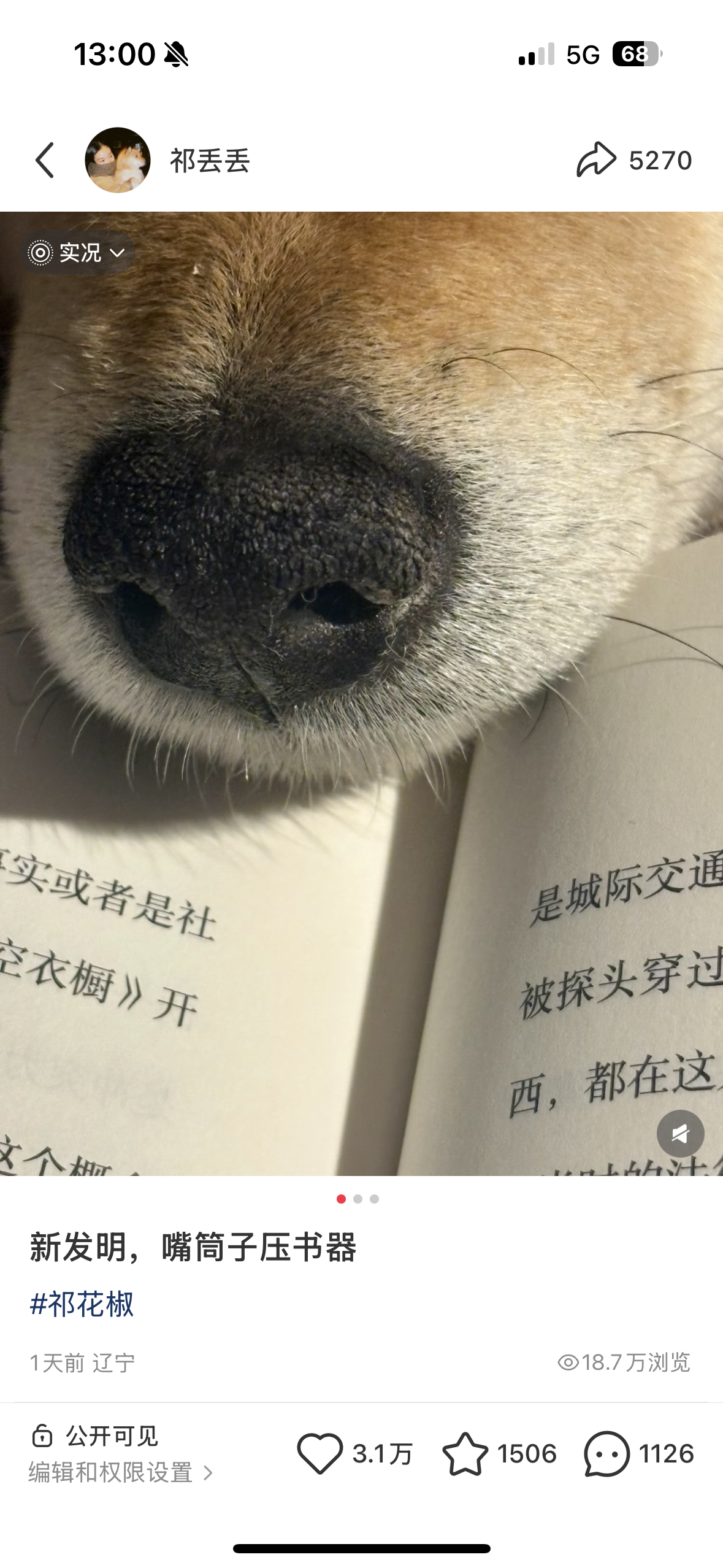 但我还是爱他,真神奇,好像看到他睡的四个小脚暖暖的,大米饭味袅袅升起的样子,我会觉得非常幸福,养狗跟谈恋爱一样,一条驴一个栓法,养柴犬久了我甚至能说出一些荒谬的话
