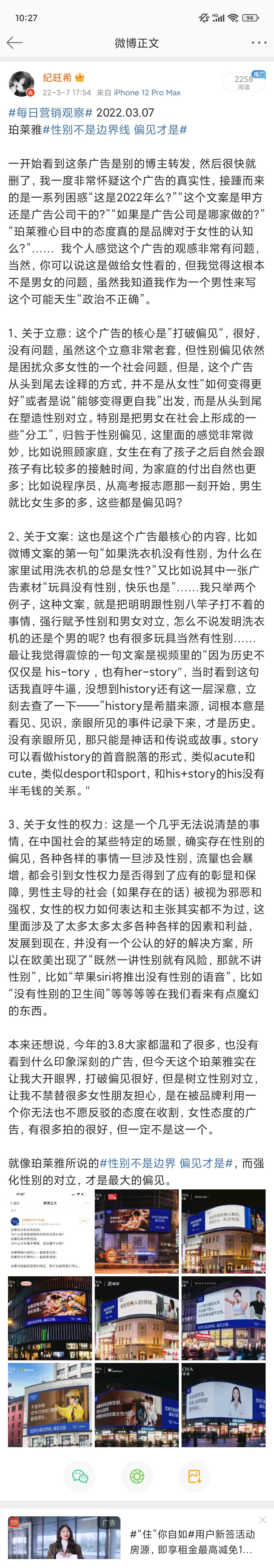 在回看今年3.8的品牌的各种大动作,突然想起往年很大声的珀莱雅今年怎么没动静了,打听了一下原来抛弃了做了很多年的“性别不是边界,偏见才是”,做了一个叫“我认得你”的新的campaign,果然态度一转就毫无水花。