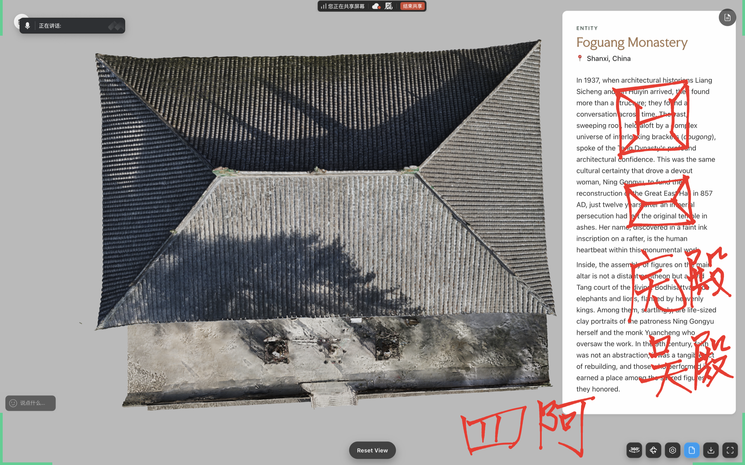 最近在做中文版 app,和可达在商量要不要基于模型做一个中国古建筑的入门讲解。详细但易懂的讲述一下如何鉴定、理解、感受古建筑。今天先让可达给我讲了一次,感觉不错。应该还是有不少人感兴趣的?