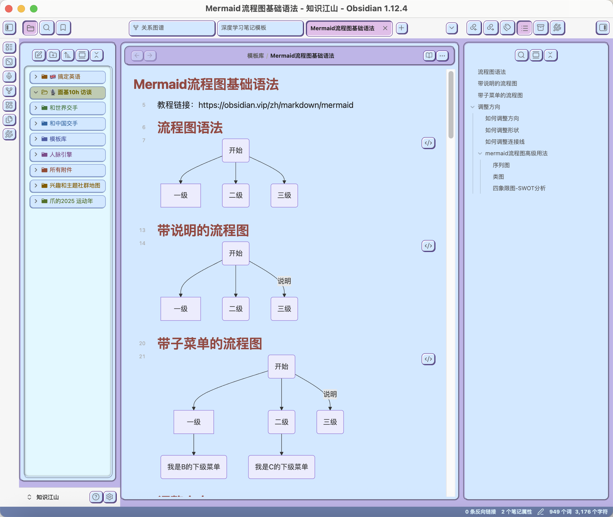 实现了实现了,在Obsidian深度笔记里手搓流程图