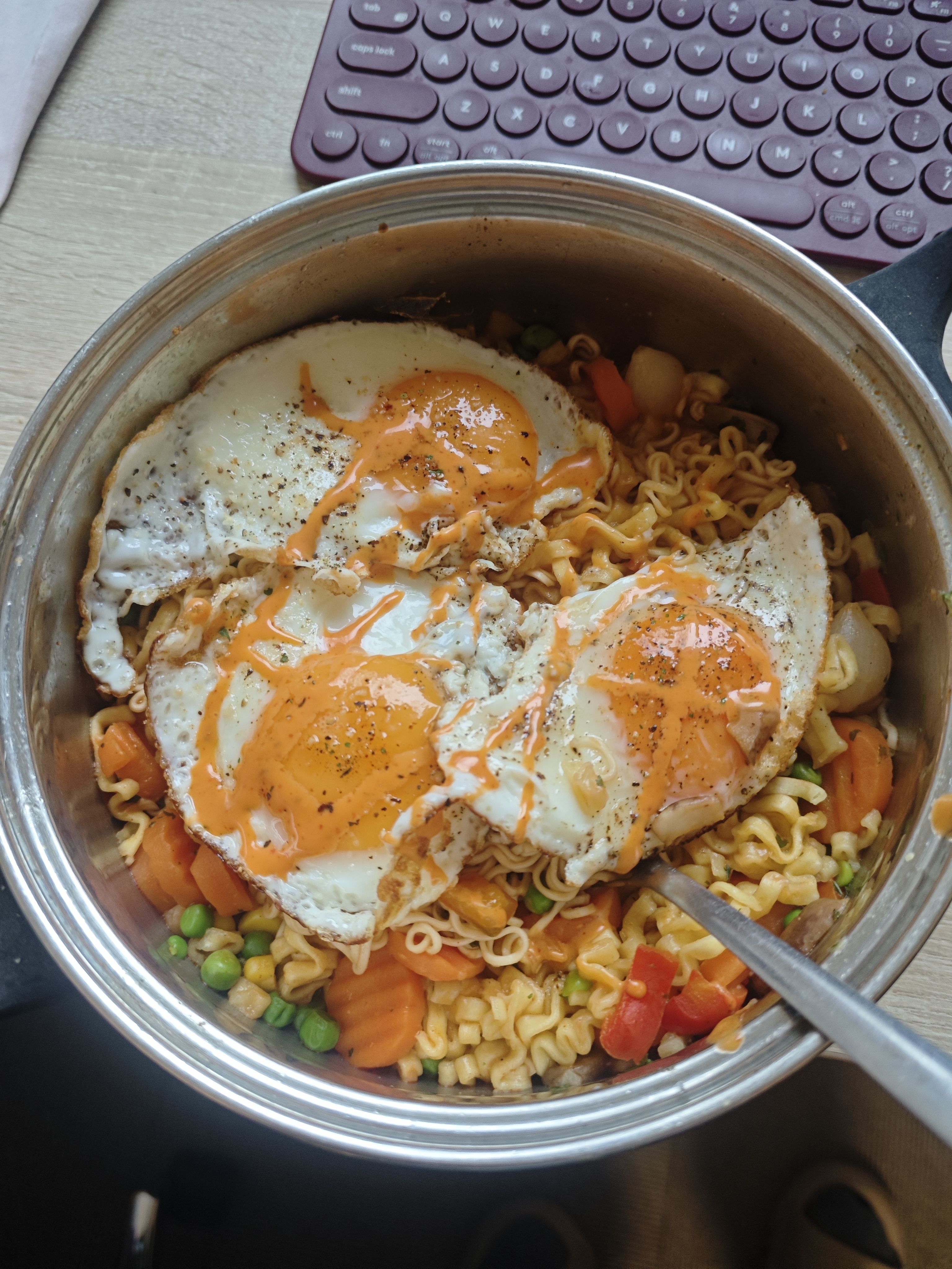 火鸡面配三个煎蛋😍