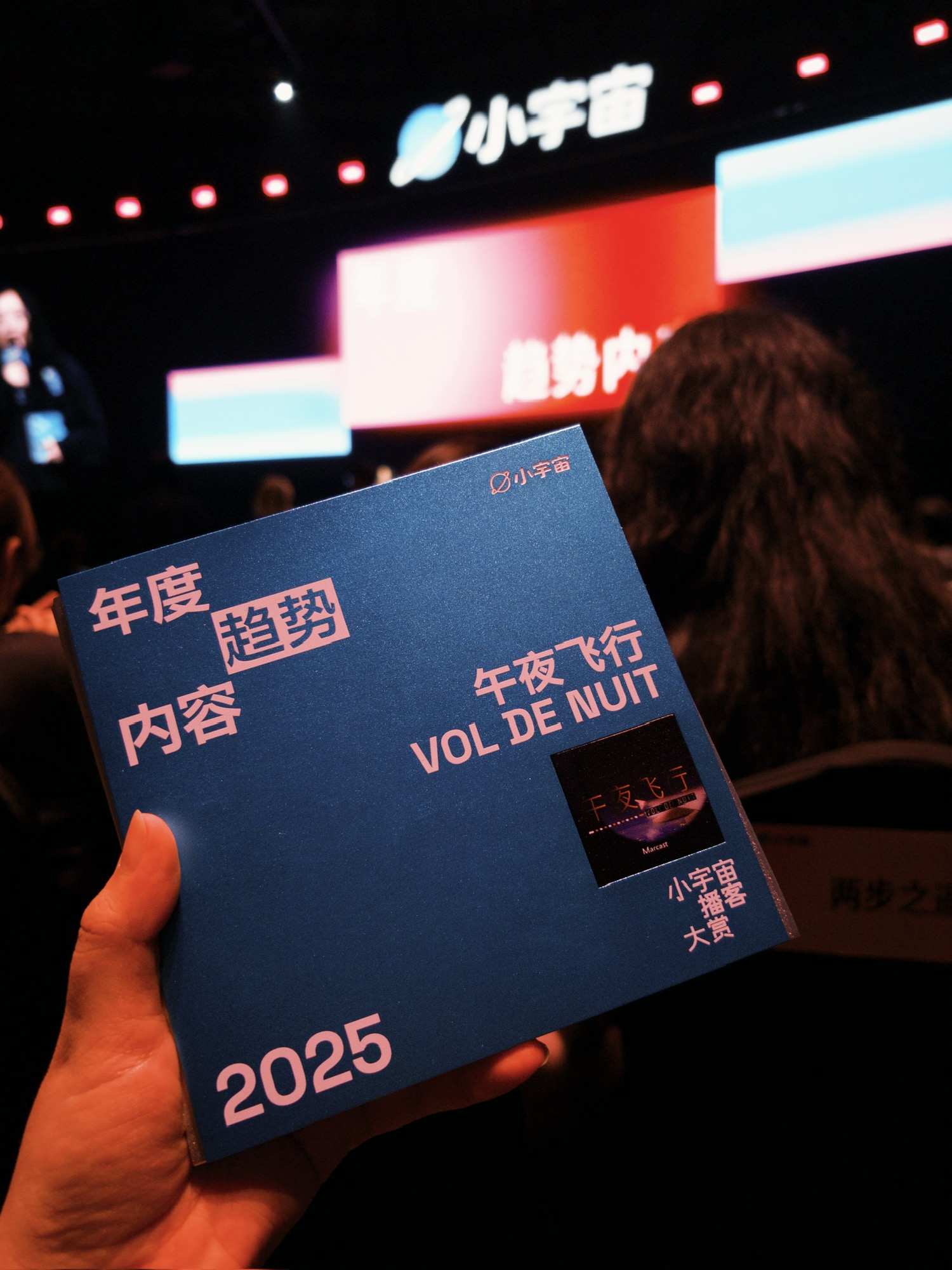 P8.大赏开始之前我起身去给七个梦老师打卡,回来落座到SVIP的位置后,前面有个人突然叫我,我抬头一看,妈耶,大伟哥……大伟哥依然那么乐呵且低调;和他聊了聊平时都听什么内容,不出意外的是海外翻译+AI相关;