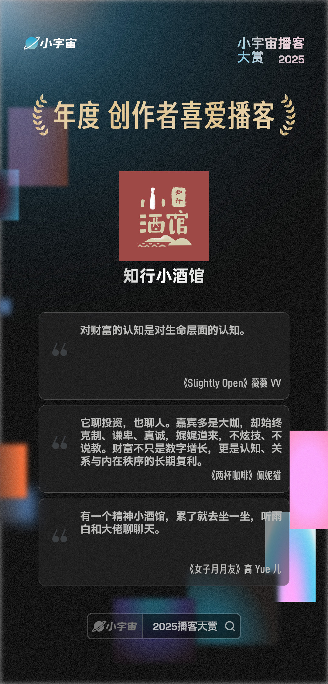 今年小宇宙播客大赏没得奖,你说不在意那肯定是假的,但也能理解平台对于这类奖项评选中的难处……