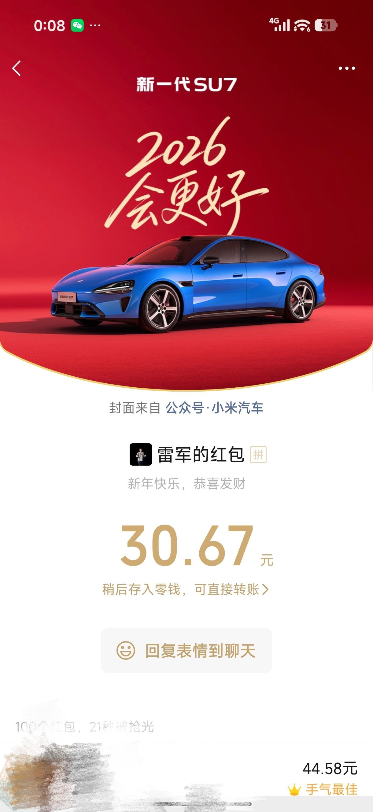 睡觉前都抢到雷总新年红包了,今年运势一定666吧