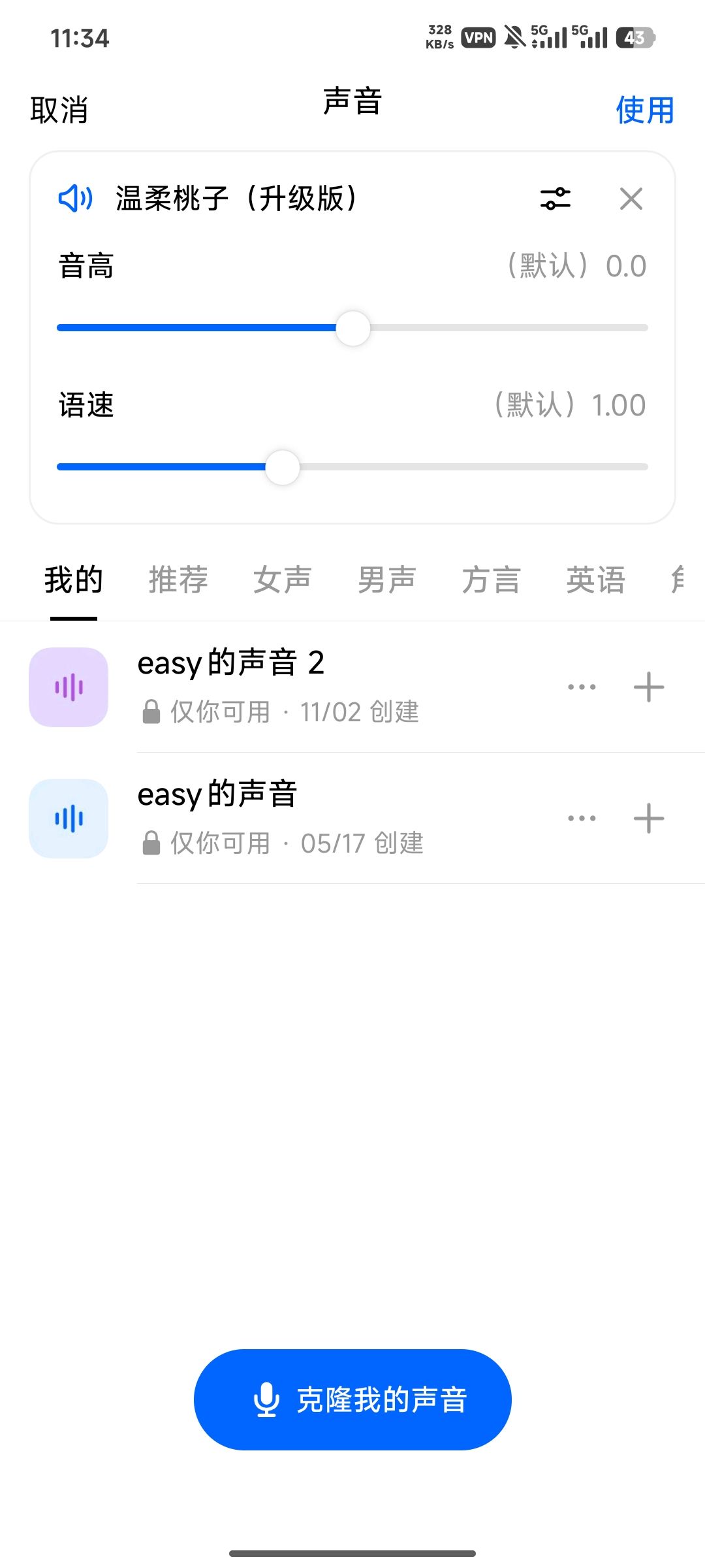 打开豆包,打开聊天框的设置,选择声音,选择我的,然后选择克隆我的声音,等待克隆完成。