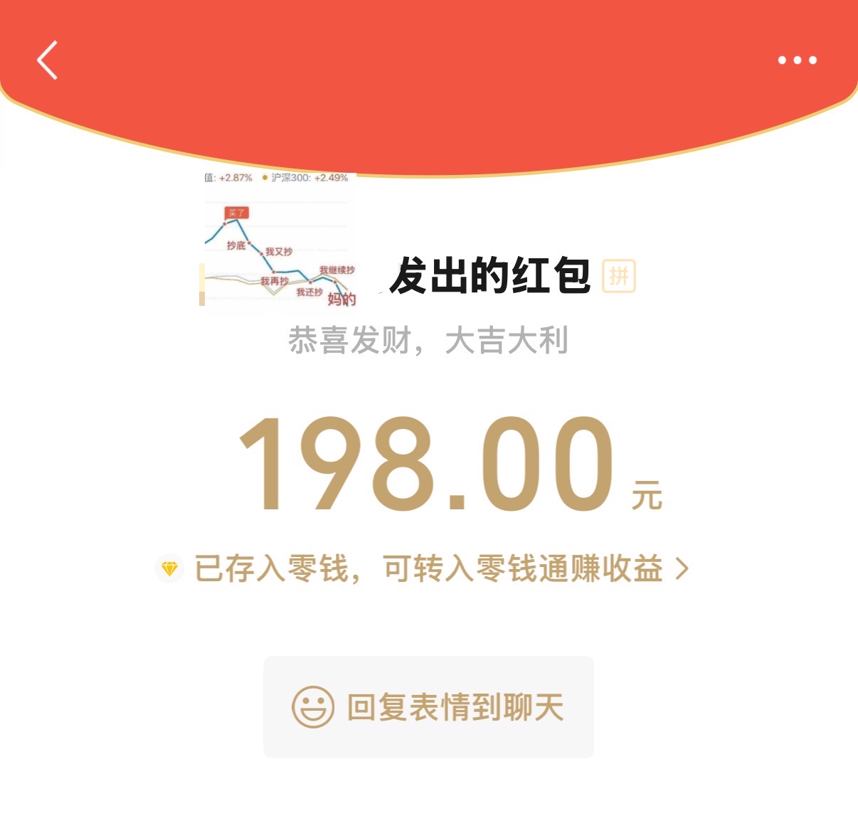 炒股最稳定的收益是每天在群里喊大哥,然后大哥发一万块钱红包给我们抢。