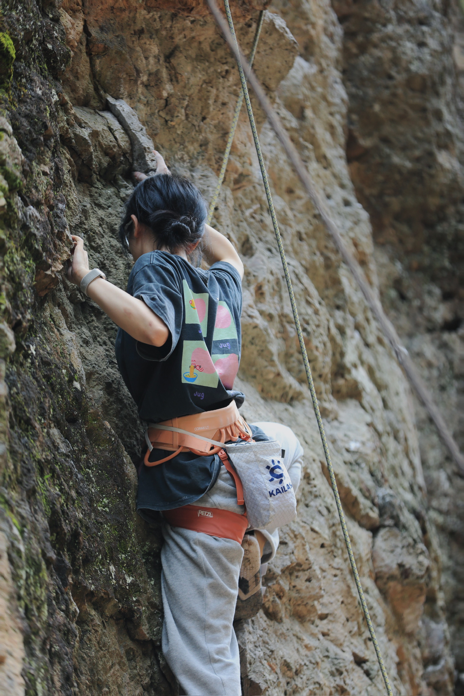 加上前一天的抱石,首次连爬三天。总共完成12条线,5.9-5.10d都有,5.10a&b为主