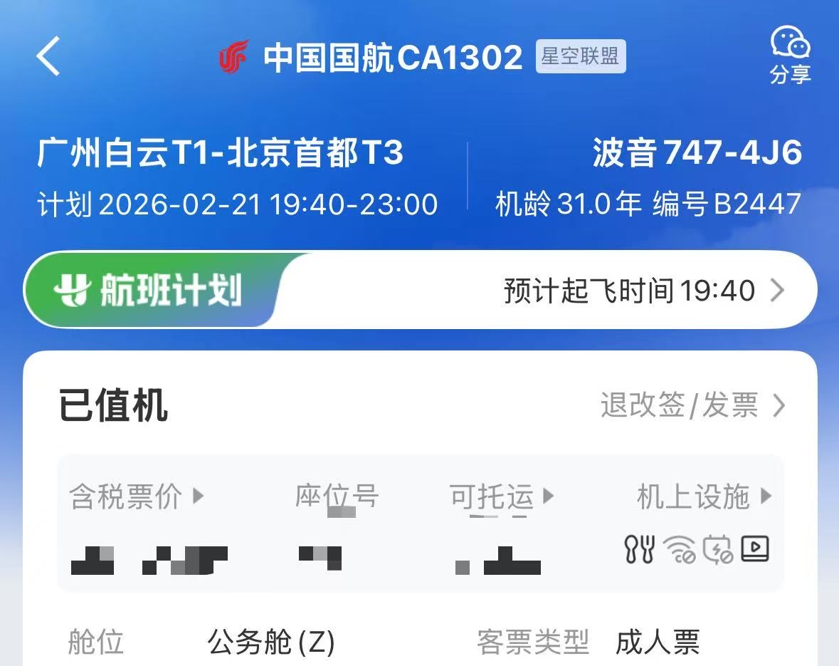 一会儿要做“空中女王”了! 据说这个飞机接待过很多国家领导人,并且还当过奥运机。这个飞机机龄跟我的年龄差不多大。