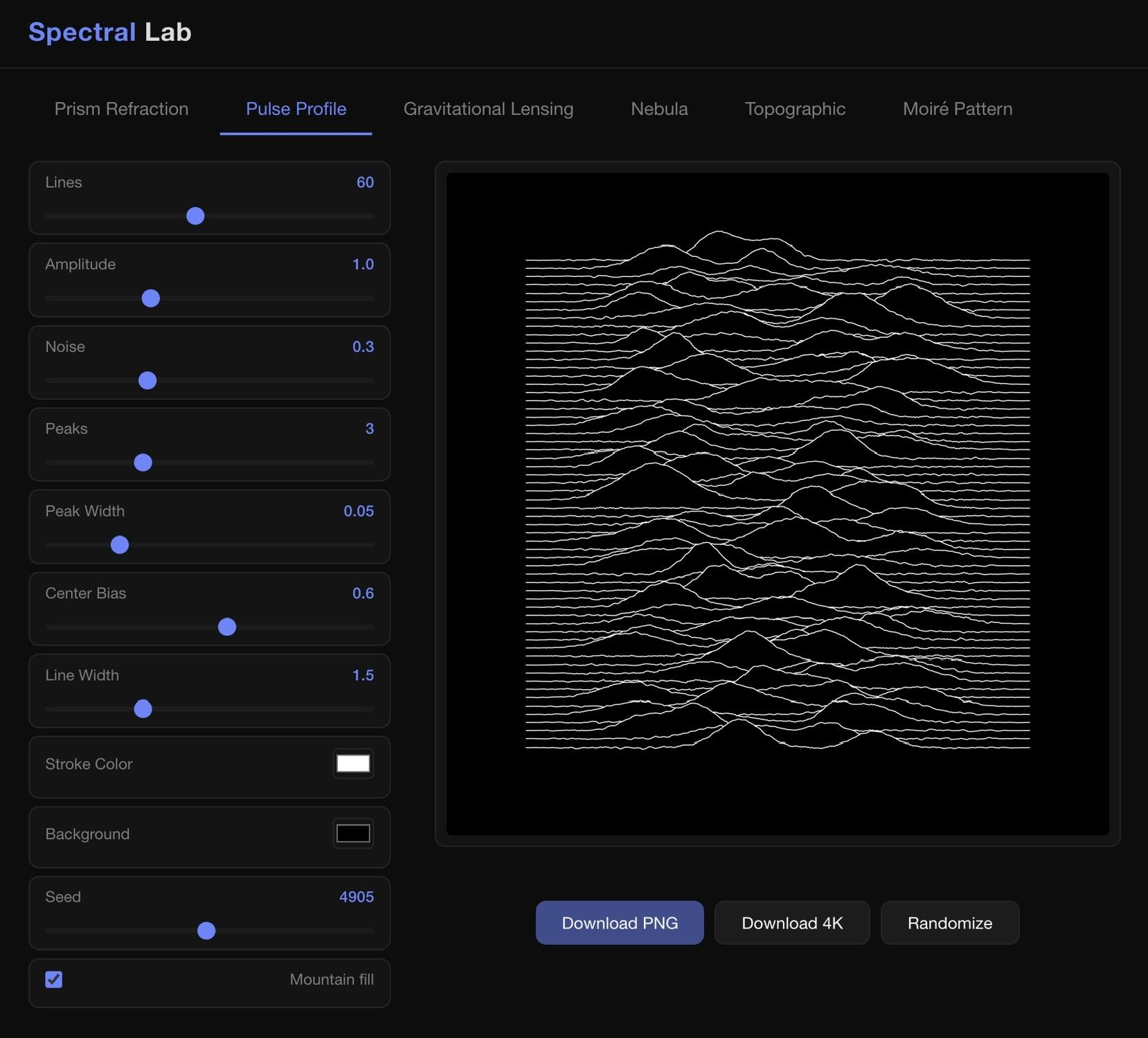 拿Claude写的一个可以生成类似The Dark Side of the Moon和Unknown Pleasures专辑封面的工具。去年其实也尝试做过,生成出来的图片线都连不上,今非昔比了。