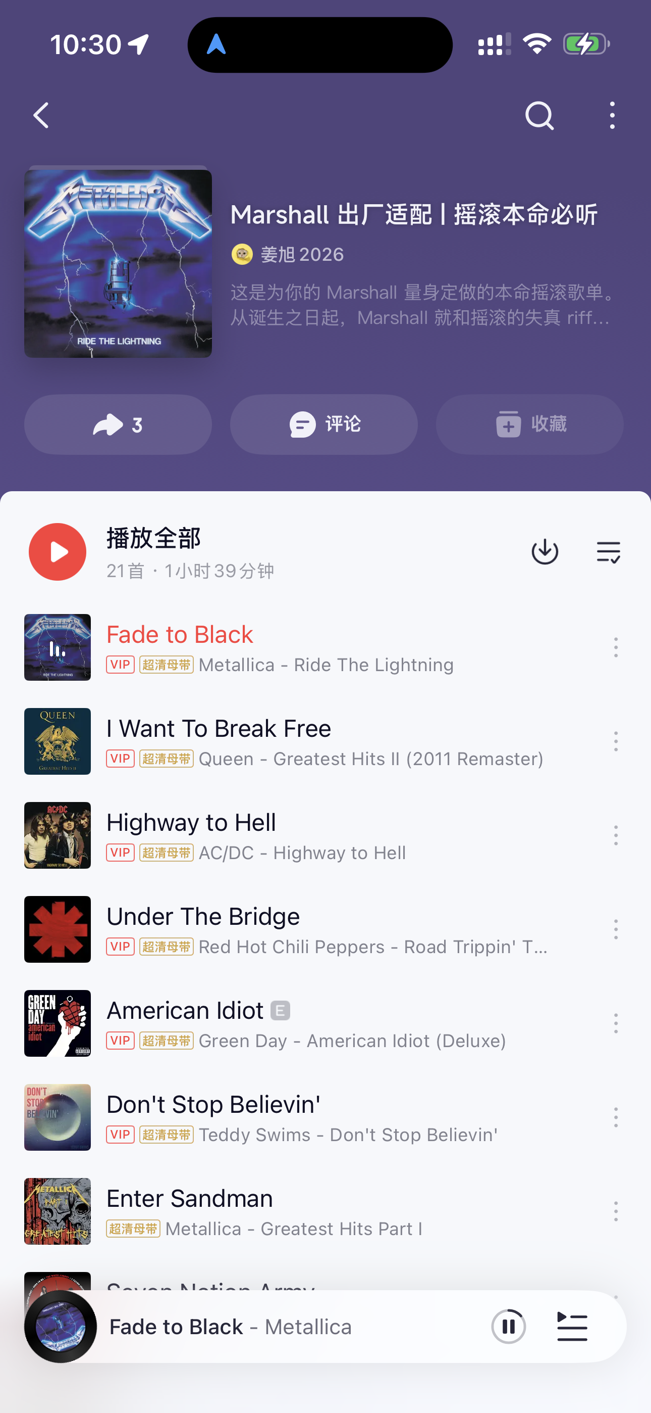 这是为你的 Marshall 量身定做的本命摇滚歌单,持续更新中。从诞生之日起,Marshall 就和摇滚的失真 riff、颗粒人声、扎实回弹的低频焊死在了一起。这里没有白开水式的平淡听感,只有能把 Marshall 调音优势拉满的传世摇滚:硬摇滚的劲道、英伦摇滚的松弛、垃圾摇滚的野性、迷幻摇滚的宏大,每一首都是 Marshall 的原生试音曲。戴上你的 Marshall,开至 40%-70% 的黄金音量,让每一下吉他扫弦、每一声人声嘶吼、每一记底鼓回弹,都精准踩中设备的本命频率,感受摇滚最本真的糙感与力量。分享歌单: Marshall 出厂适配 | 摇滚本命必听 163cn.tv (@网易云音乐)