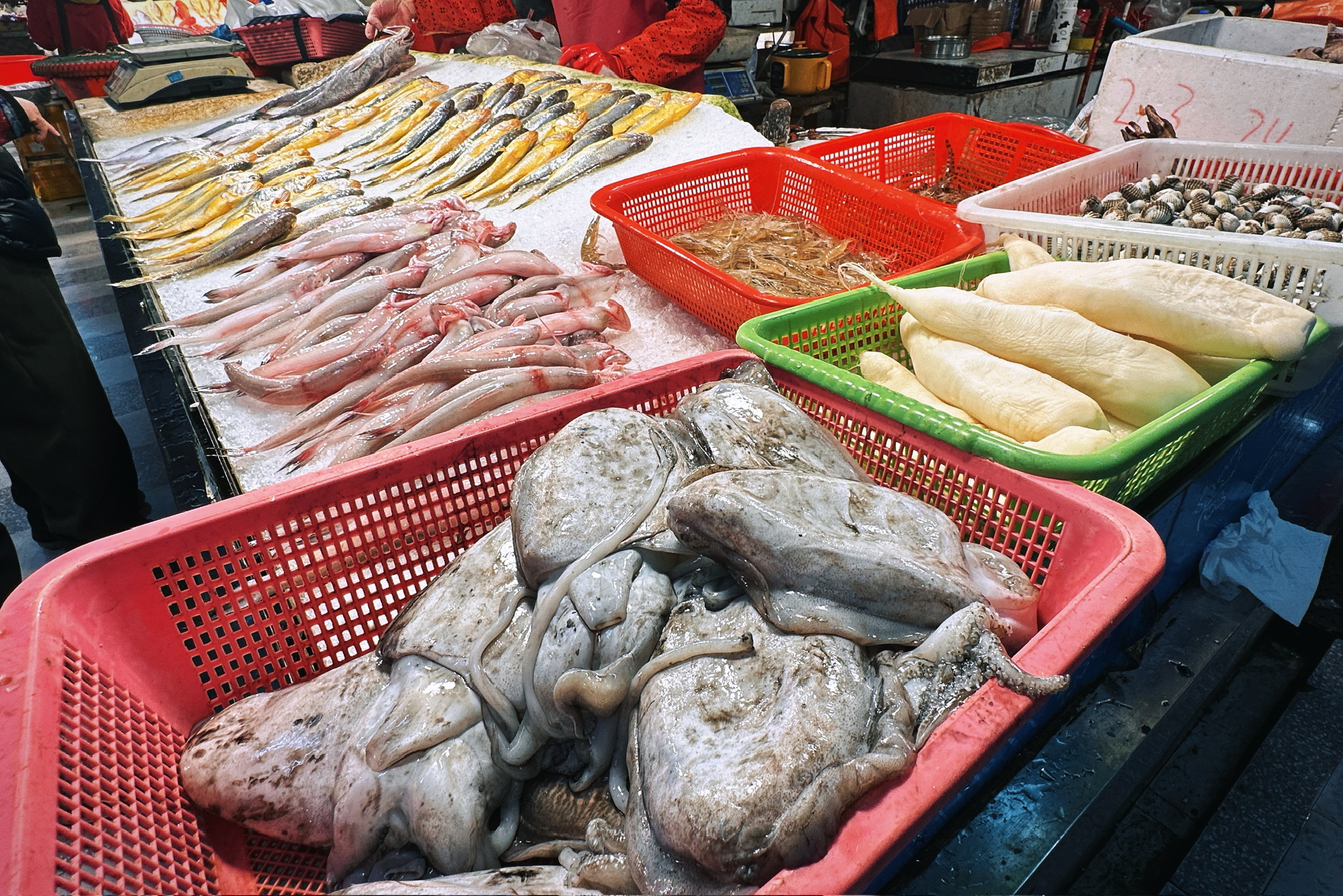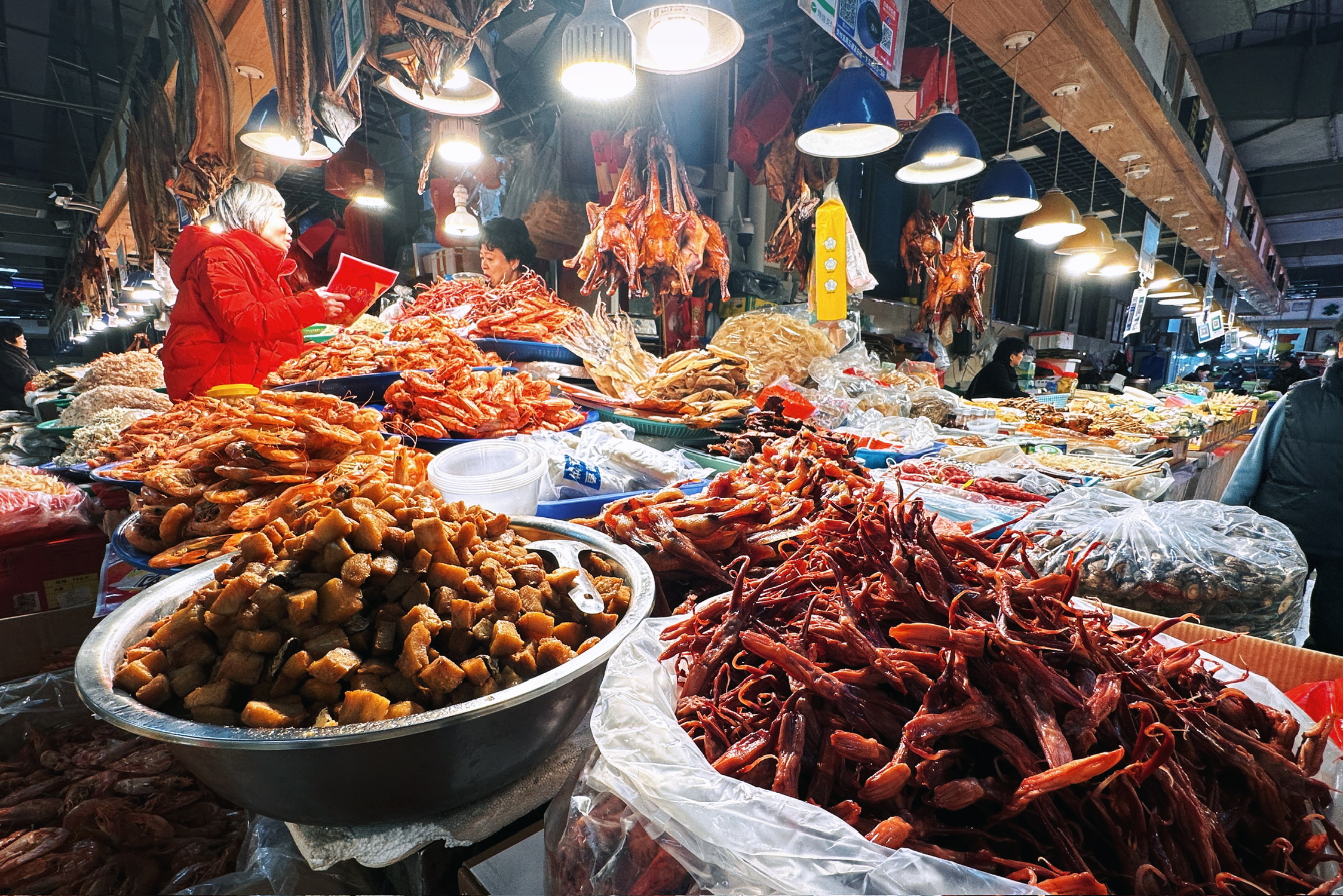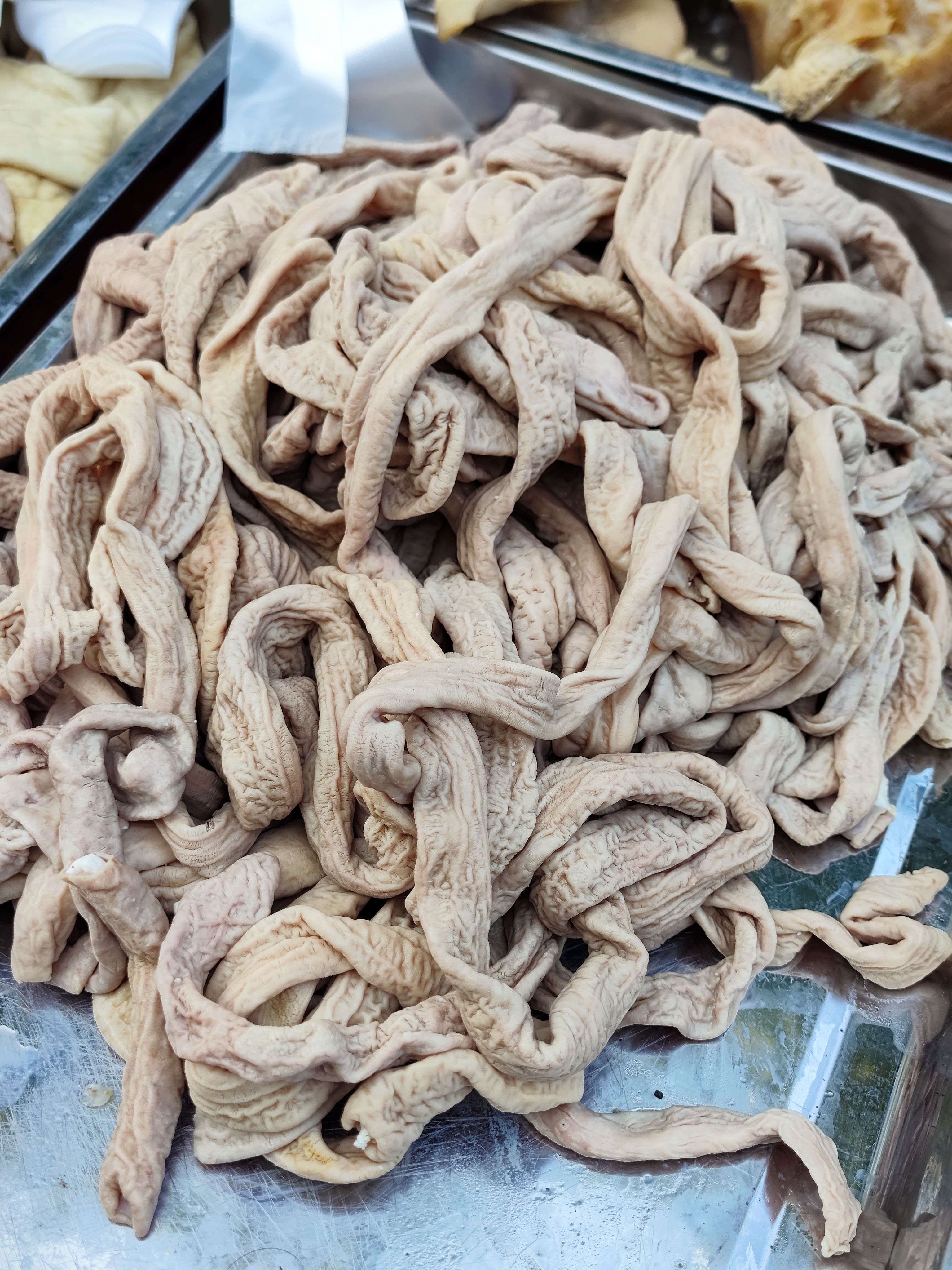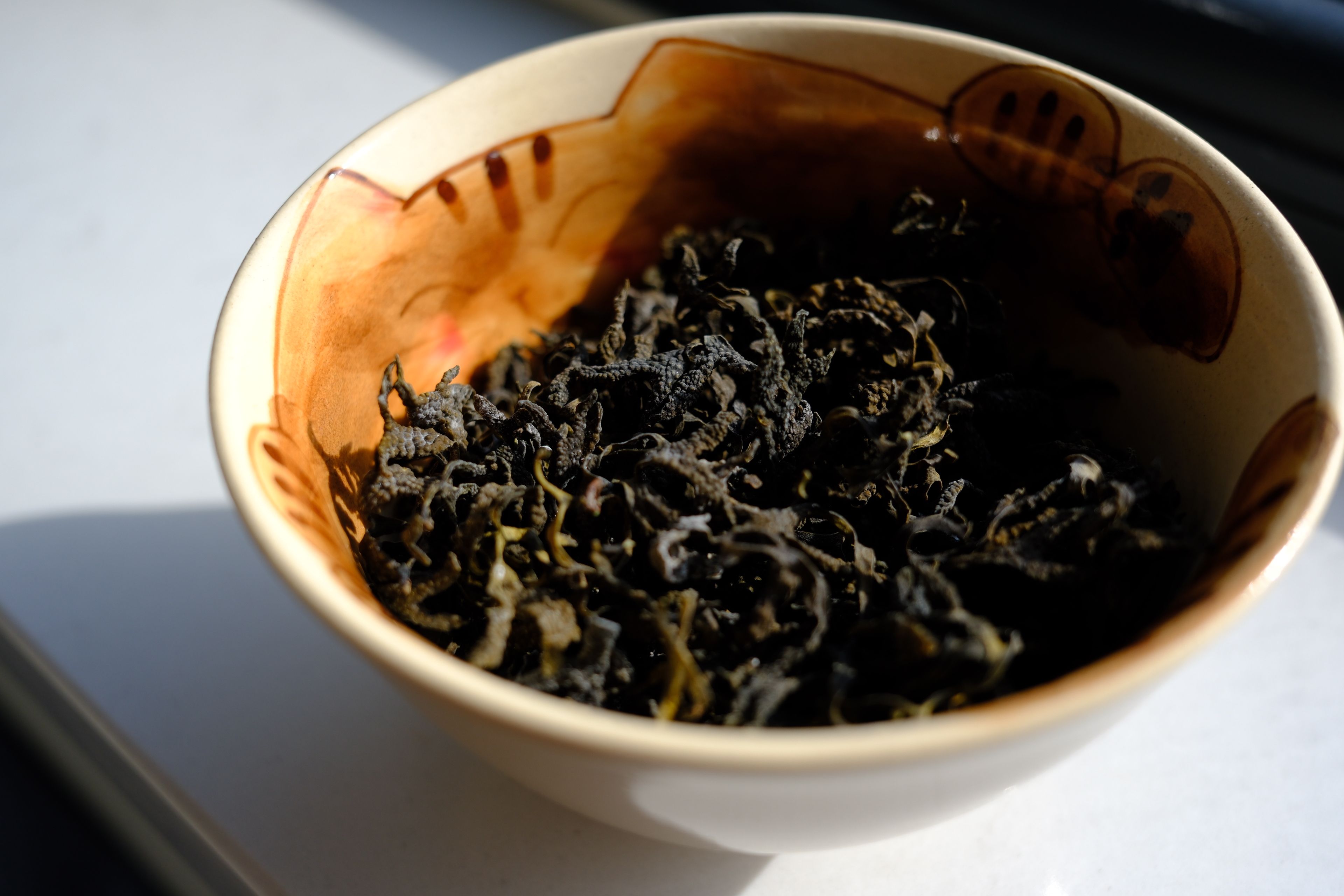 鹿角菜(Pelvetia siliquosa,曾呈奎院士1953年发表)是陪伴了我国北方菜系特别是鲁菜千年之久的黄海生态区特有藻类,是打卤面,招远丸子等传统菜肴中的关键性食材。但遗憾的是,上世纪90年代之后,鹿角菜突然减产,直至最终从食材市场中彻底消失了,并于2021年9月被列为了国家2级保护野生植物。但我们这代人真的再也吃不到真正的鹿角菜了么?没有什么能难得倒爱吃之人,在不懈的努力之下,终于让我找到了合法合规可持续的鹿角菜,虽然价格略高采购繁复,可也总算让我在春节期间收到了。现在市贩的鹿角菜已经全部用羊栖菜(胶东地区俗名:鹿角尖)做了替代,只保留鹿角菜的鲜味特性,可实际是真正的鹿角菜在烹饪中更重要的特性是口感和制滑(类似于天然勾芡和粘合),鹿角菜加热之后会析出大量粘液(图四很明显),这个粘液会变成浓稠透亮的卤子和招远丸子的粘合剂。