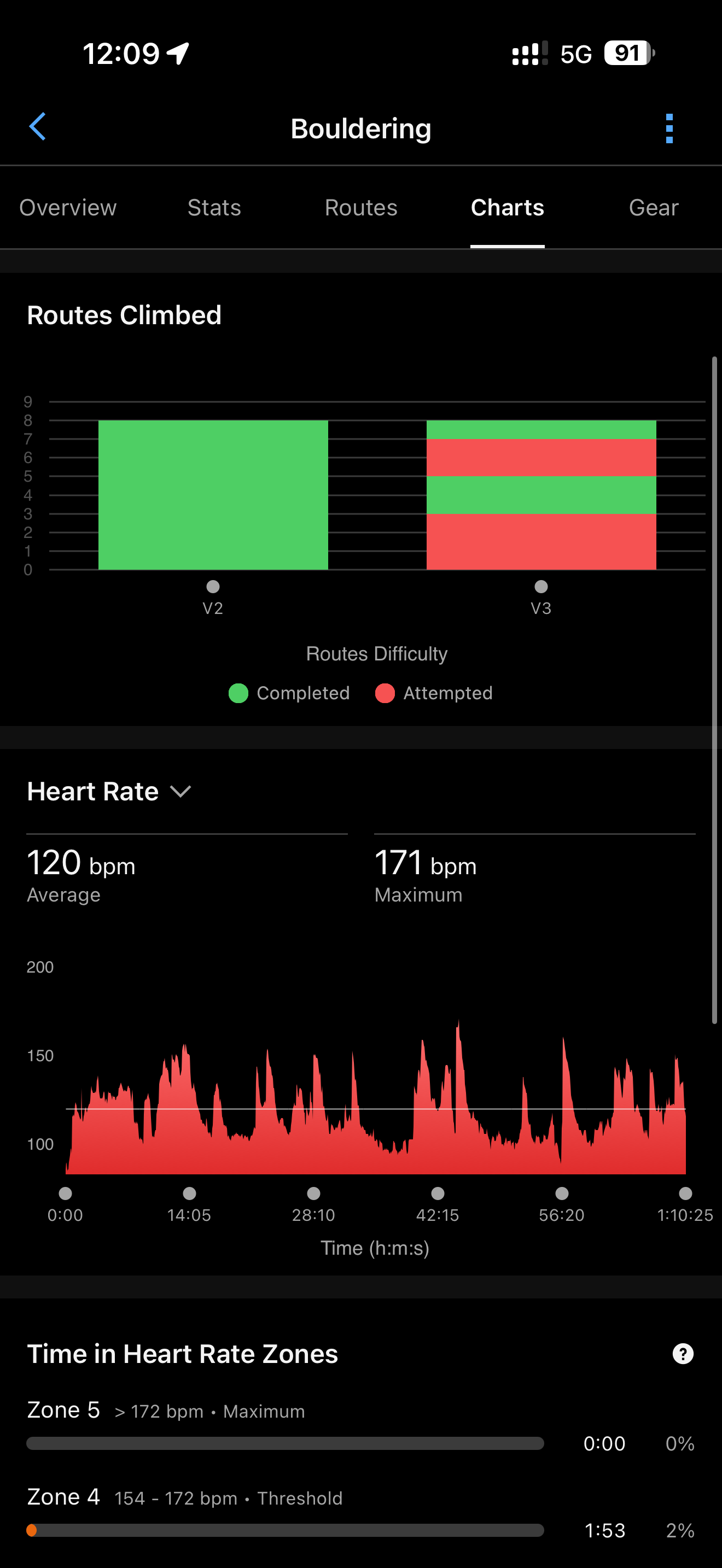 佳明会按照线路难度聚合尝试和完攀次数,一目了然