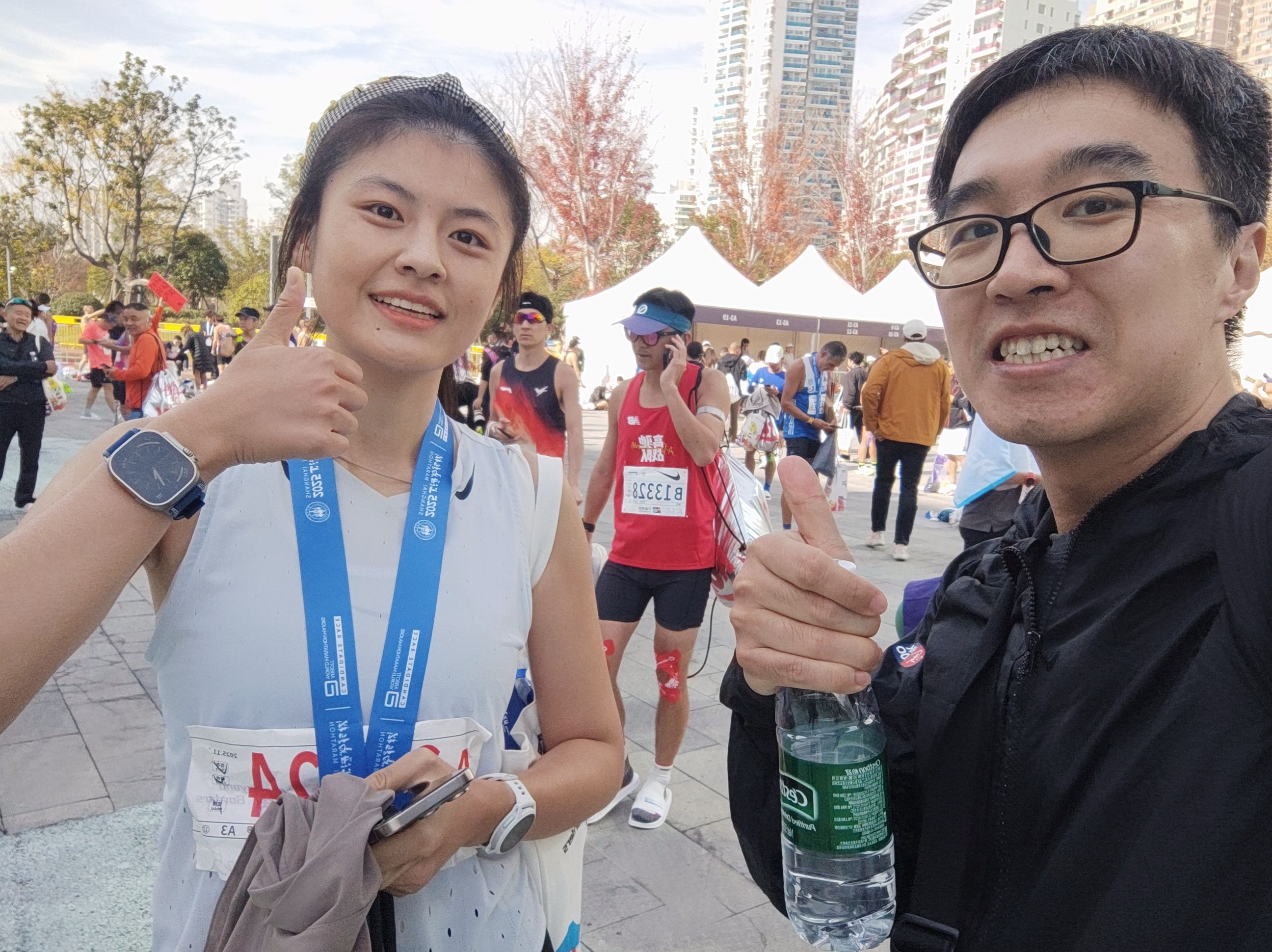 赛场上见到了停下来等人的苗浩,在路边加油的西装大叔,在11k-37k一直在附近的1124酱(37k我掉速她超过去了),赛后又遇见合影,以及赛后遇到信日漫谈的信哥。