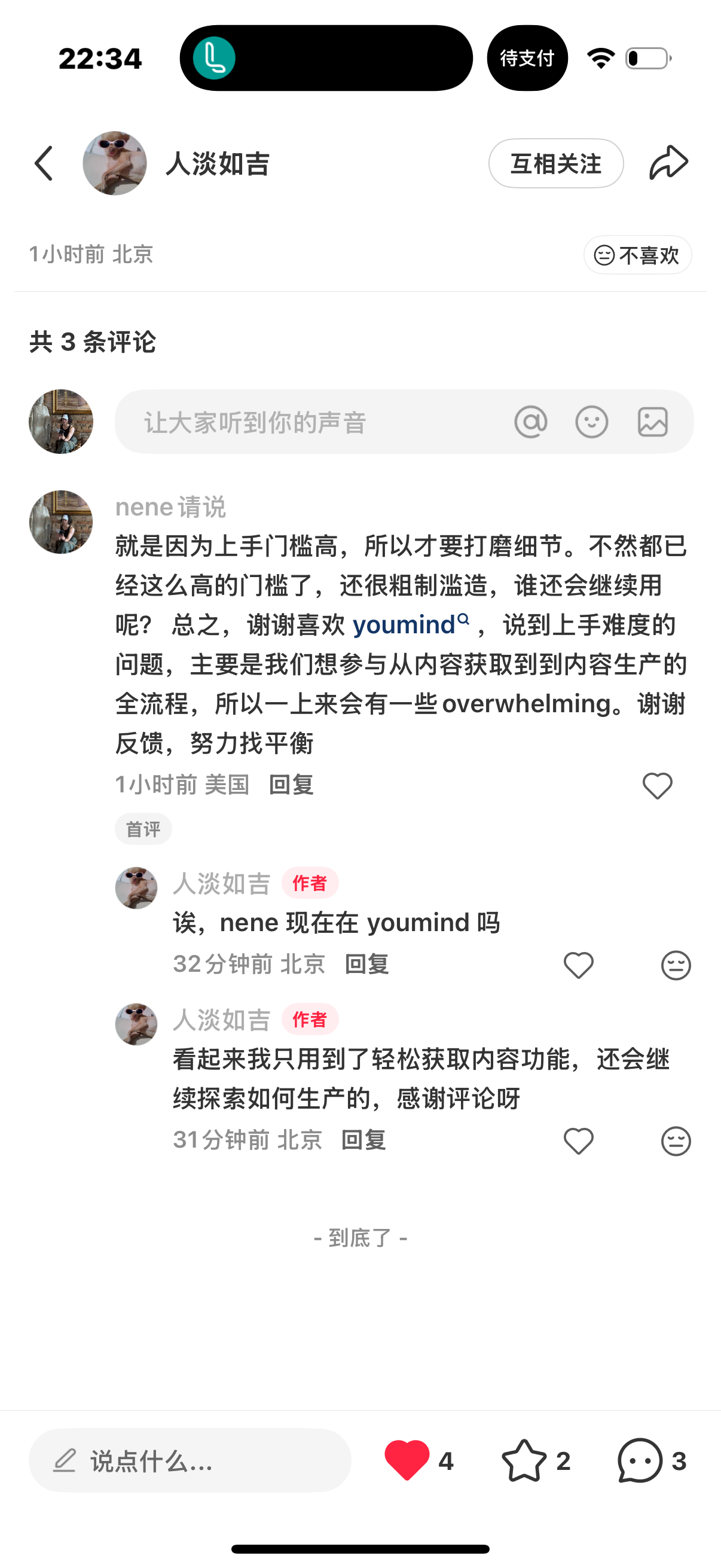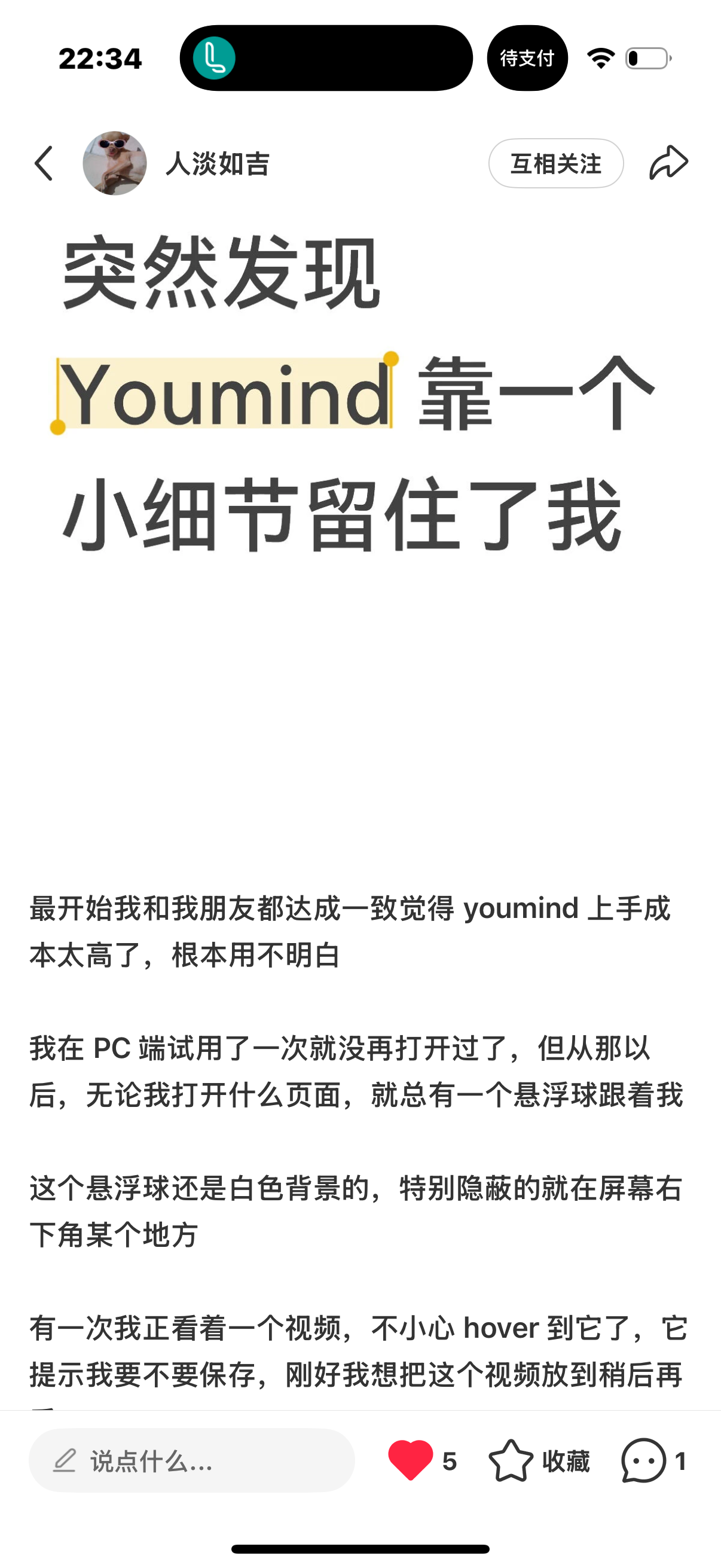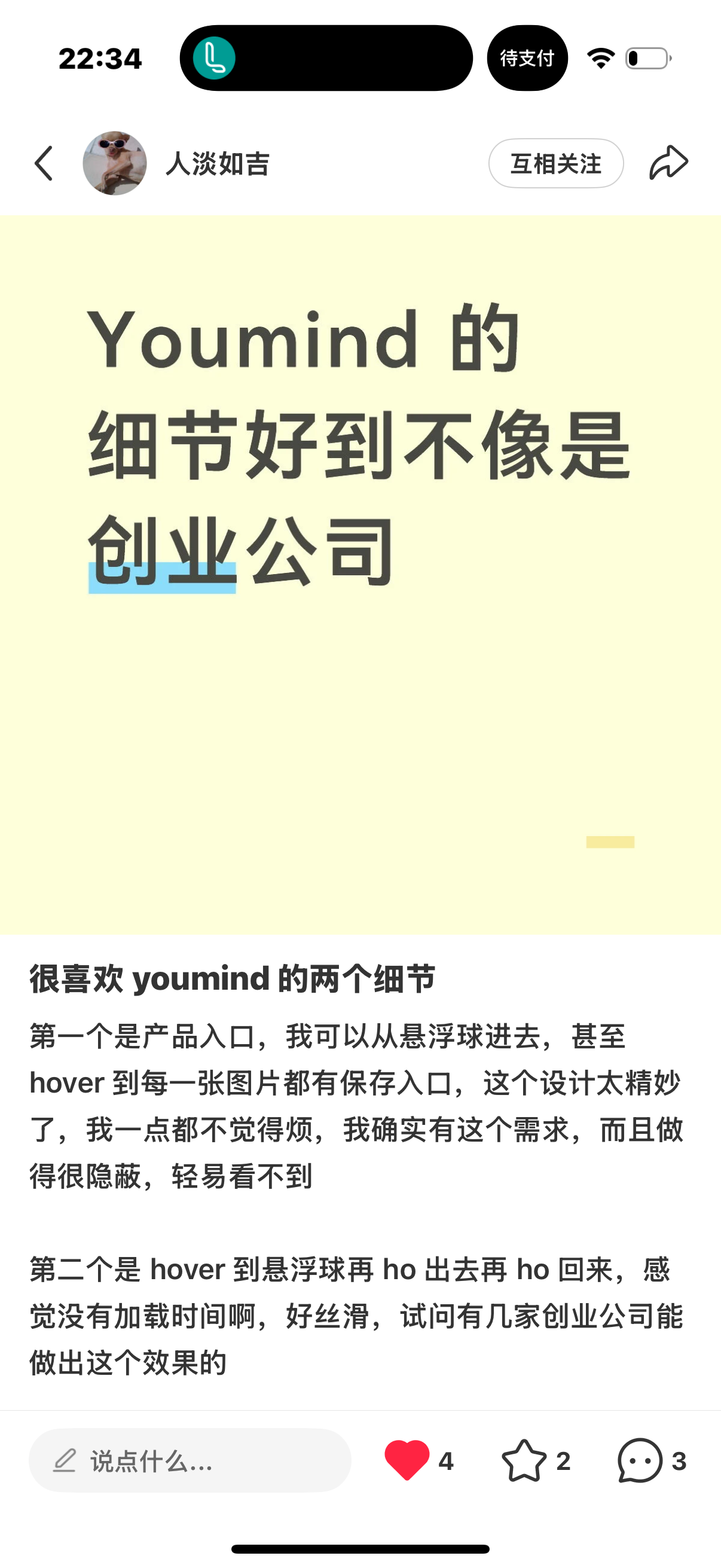 玉伯: 今天在小红书发现一个漫画博主 好多笔记的点赞量过千 后来得知是用 YouMind 辅助创作 已快速涨粉 2000+ 突然有那么一瞬间 好羡慕有时间用 YouMind 创作的用户 我的创业目标之一 是让团队同学包括我自己 能有机会每天用 YouMind 进行创作 什么时候可以不再主要做 YouMind 而是主要用 YouMind 呢