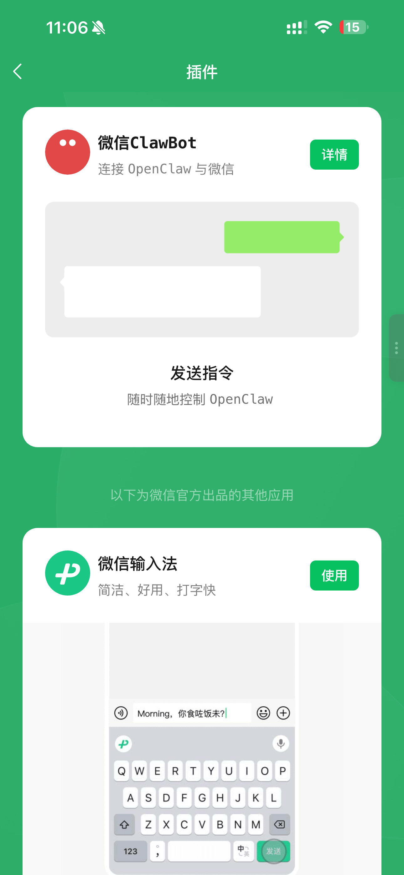 今天微信更新了新版本,支持微信端直接控制OpenClaw
